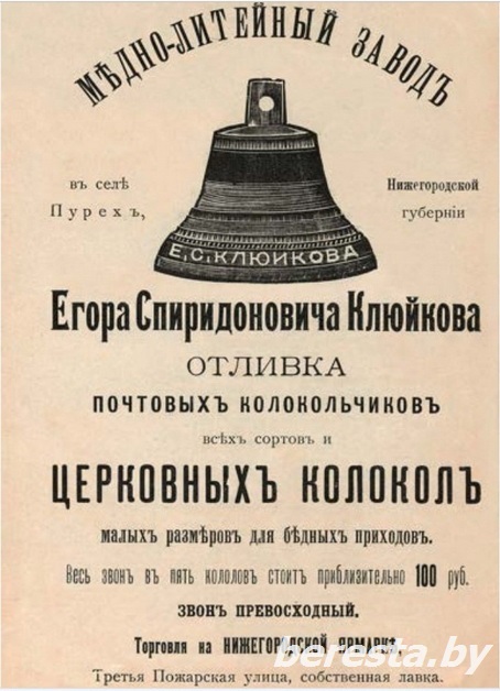 История литейного заведения Егора Спиридоновича Клюйкова началась в 1863 году. Клюйков был выходцем из семьи временнообязанных крестьян. Под производство литья он переделал собственную красильню, которая находилась рядом с селом Пурех Нижегородской губернии. Кустарное производство быстро стало крупнейшим в Российской Империи, с конца 1870-х годов перешло на уровень фабрично-заводской промышленности. На заводе изготавливали детали пароходов, ямщицкие колокольчики, бубенчики, церковные колокола. Изделия демонстрировали на международных выставках. Различные виды колокольчиков удостоились золотых медалей в Брюсселе и в Риме.