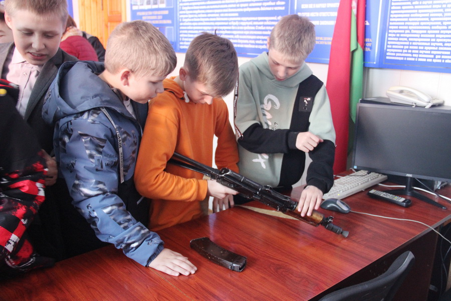 После оживленной беседы, в ходе которой заместитель начальника Берестовицкого РОВД по идеологической работе и кадровому обеспечению ответил на вопросы ребят, дети смогли ознакомиться с оружием и средствами самозащиты, имеющимися на вооружении в районном отделе внутренних дел.