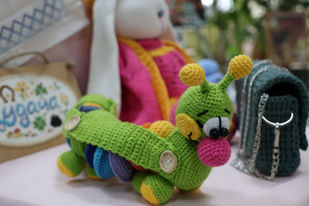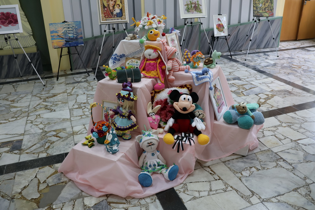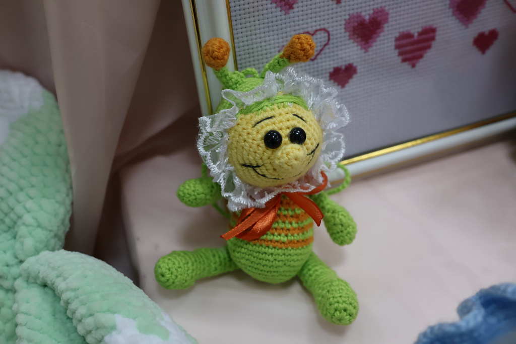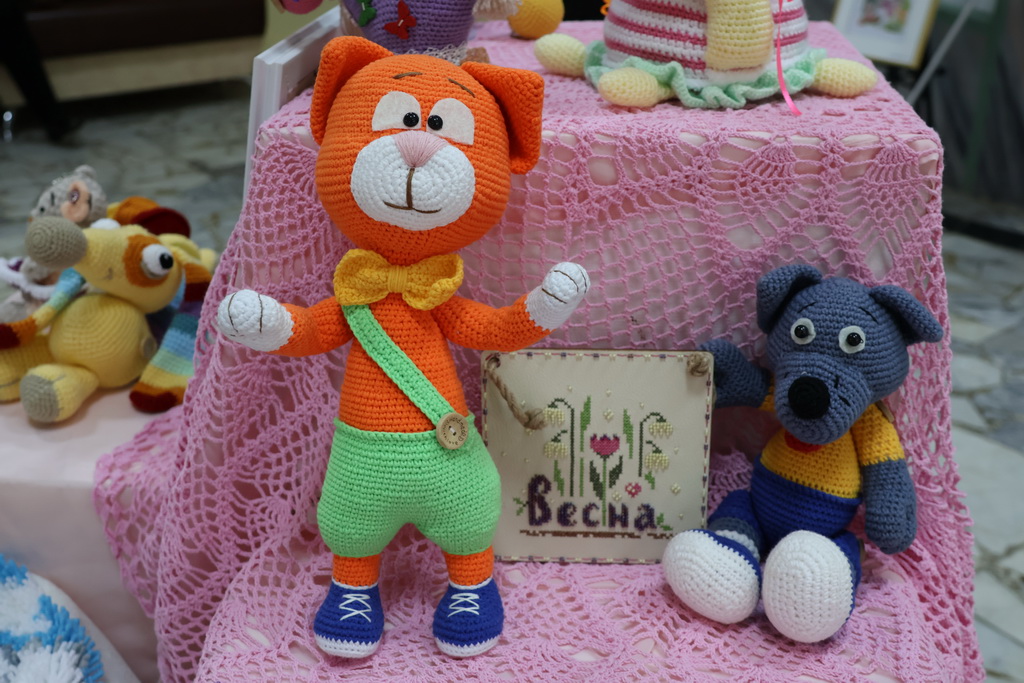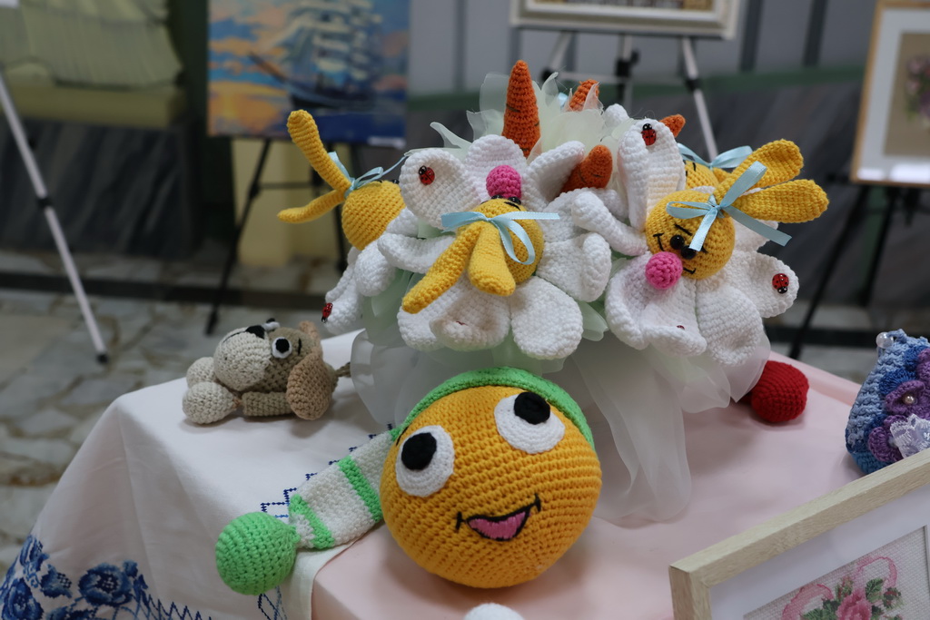 Мастерица рассказала посетителям выставки о том, что любовь к творчеству ей с детства привили бабушки, которые вышивали, вязали крючком и спицами. Именно у них она научилась основам вязания и традиционной вышивки.