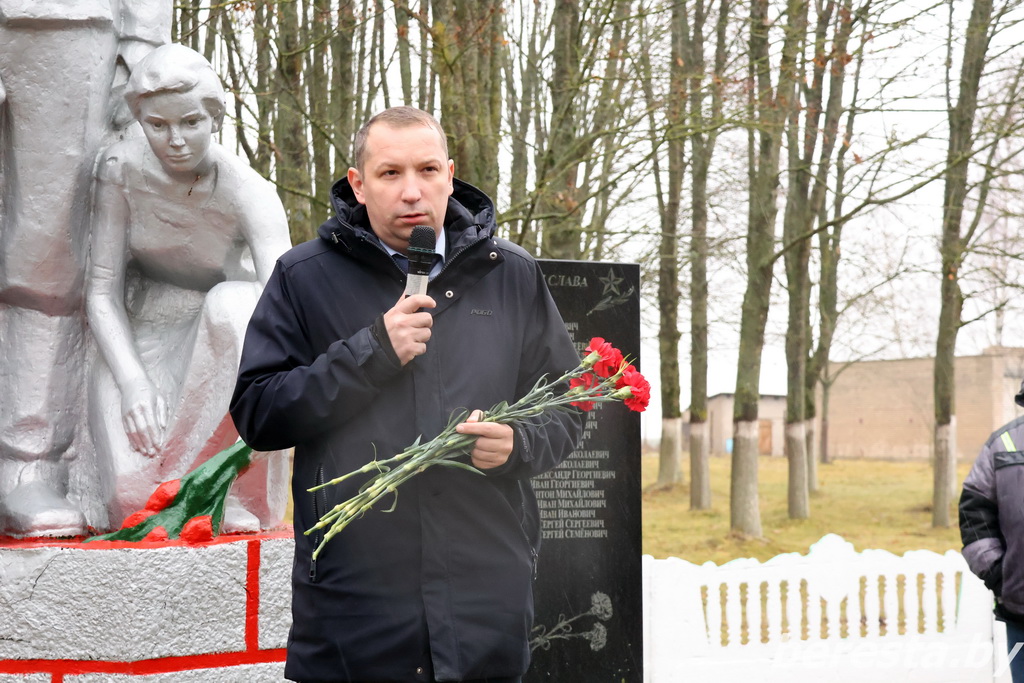 – Наша страна прошла достаточно долгий путь целенаправленного геноцида, – отметил заместитель председателя райисполкома Андрей Щука, выступая на митинге. – Более 1100 дней продолжалась оккупация. За этот период более трех миллионов человек погибло. Более 13 тысяч деревень было сожжено. Из них 290 повторили судьбу Хатыни. Сегодня установлено, что на территории нашей страны о более сотни мест захоронений мы даже не знали, но там расстреляны и замучены были десятки тысяч наших граждан. Великая Отечественная война планировалась картами, схемами. Со стороны Германии план был простой – 50% населения должно было быть уничтожено полностью, а те, кто остались, должны были стать обслугой, рабами. Прошло более 80 лет с того периода, но, в принципе, ничего не поменялось в мире. Сегодня точно так же страны НАТО рисуют схемы, графики, планируют, как они будут перебрасывать войска на восточную рубеж, для того чтобы защититься от мнимой угрозы со стороны Беларуси и России. Чтобы это не повторилось, сегодня во всем мире тысячи людей выходят к памятникам, обелискам, которые есть в их странах, и вспоминают о жертвах геноцида. Вечная память всем, кто невинно погиб в годы Великой Отечественной войны на наших землях.