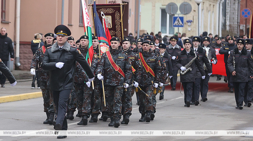 Примечательно, что мероприятию предшествовал торжественный марш по центру города. По сложившейся традиции правоохранители региона прошли по маршруту от Советской площади до здания УВД. В праздничной колонне шествовали около 400 сотрудников, в том числе женщины в погонах. Участие в параде приняла и конная милиция, которая патрулирует некоторые улицы Лиды.-0-