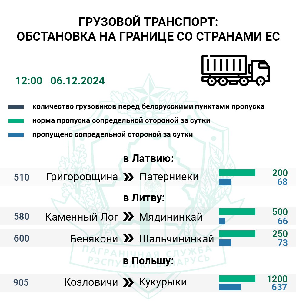 Незначительное количество легковых авто фиксируется перед польским пунктом пропуска Тересполь (Брест) — по состоянию на 12:00 в очереди находится 65 единиц транспорта. Сопредельная сторона с понедельника приняла на свою территорию около 40 % авто от нормы.