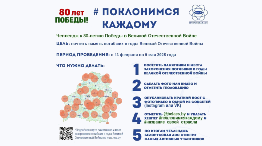Как отметил председатель первичной профсоюзной организации БелАЭС Дмитрий Аксенин, участники не ограничены в формате и количестве постов: «Ведь самая главная цель историко-культурного челленджа — почтить память всех, кто сражался за наше мирное небо, в том числе и обозначая перспективы сохранения и популяризации памятников Великой Отечественной войны через современные цифровые площадки. По итогам челленджа будут отмечены самые активные участники».