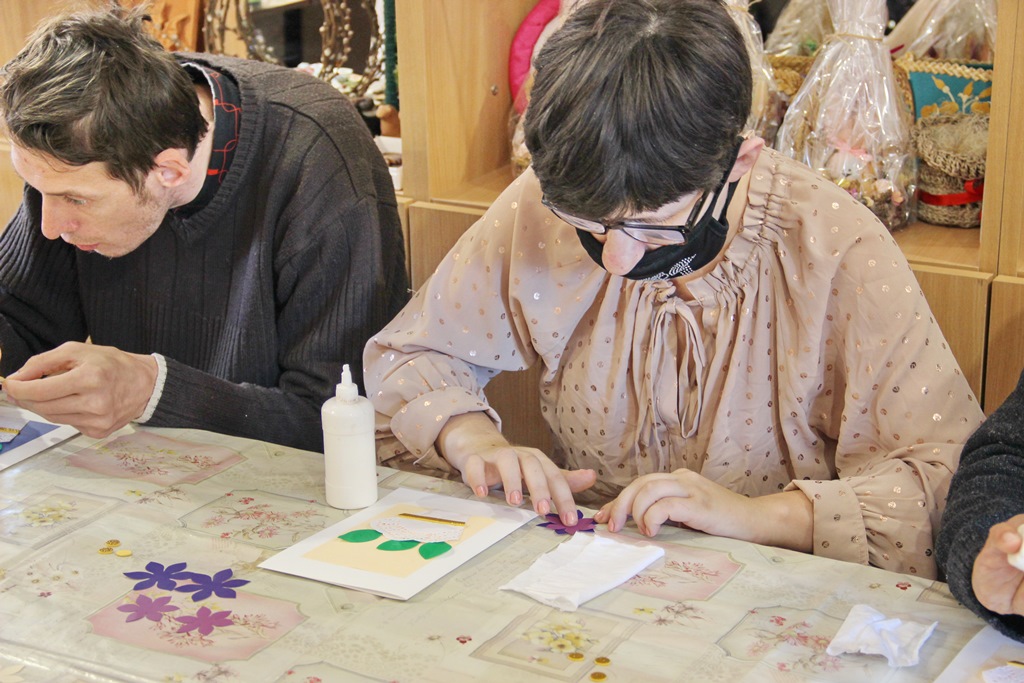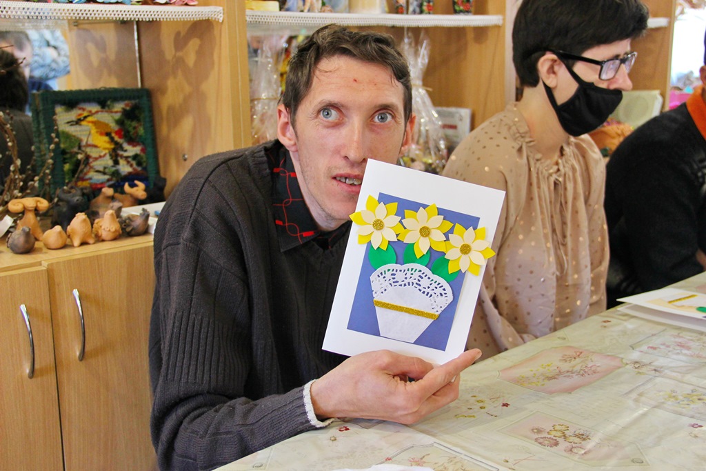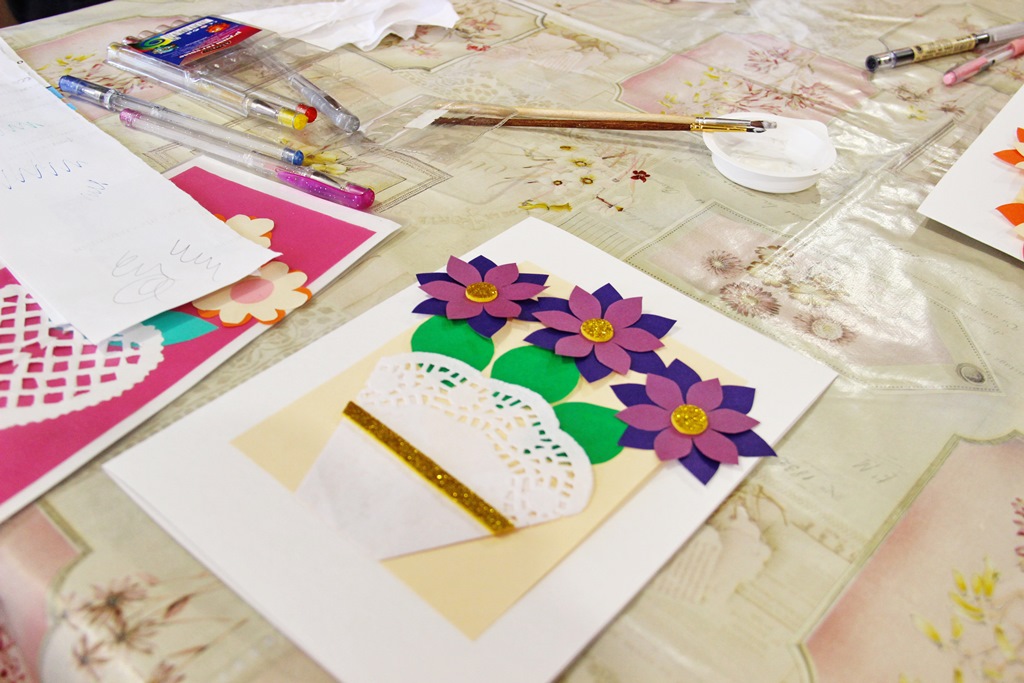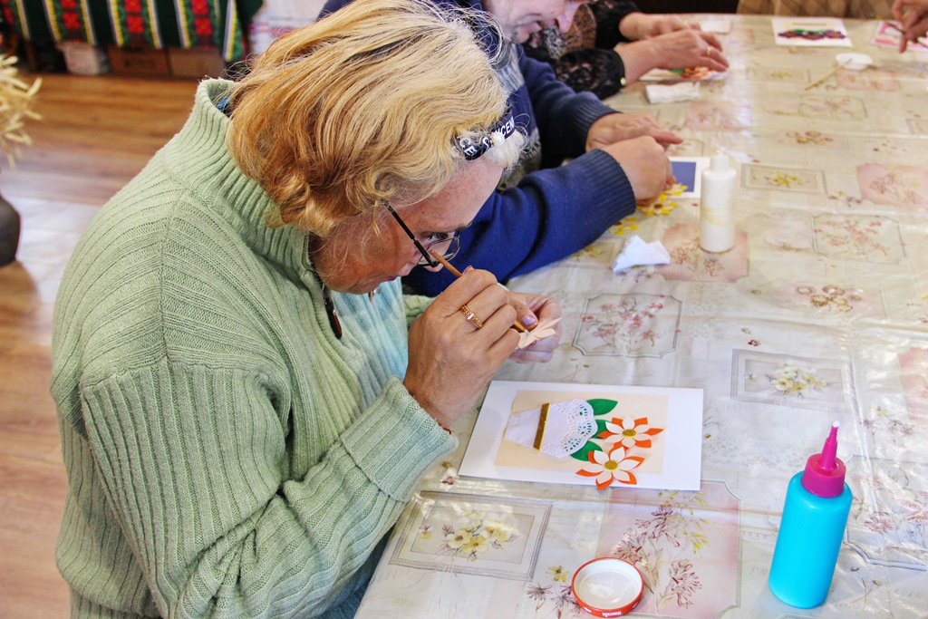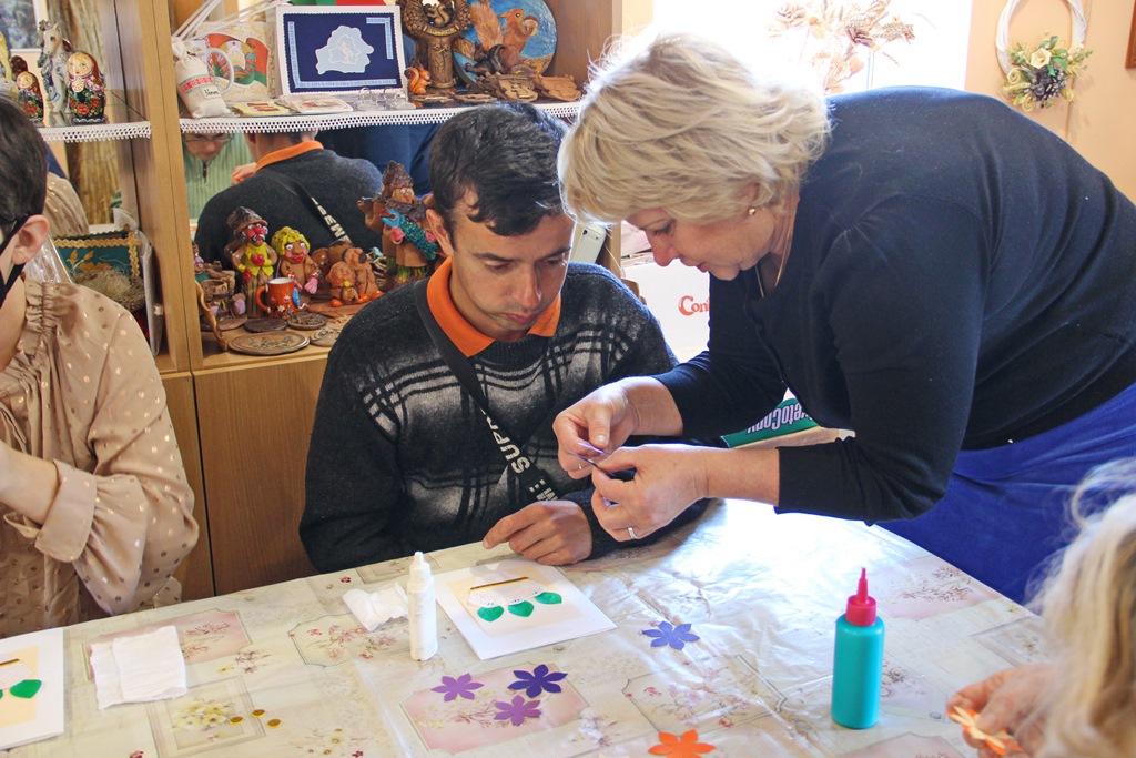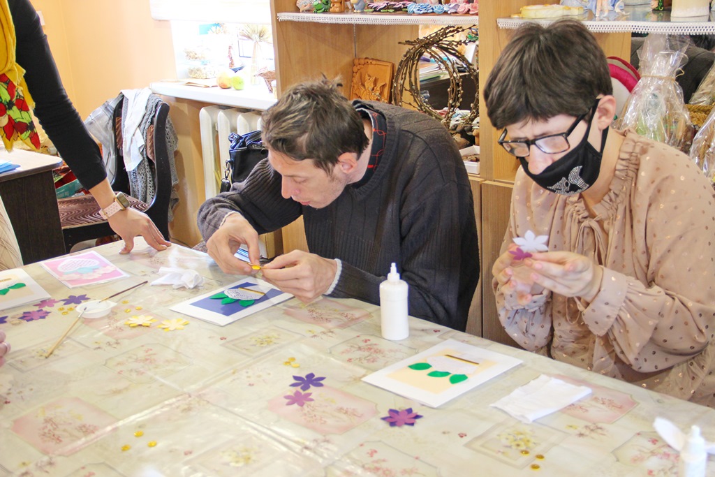 Под чутким руководством настоящей мастерицы-искусницы Анастасии Касьян в уютной, дружелюбной атмосфере, посетители ТЦСОН приступили к изготовлению оригинального подарка для своих мам. Ловкость рук, немного усилий, – и они держат в руках оригинальные поздравительные открытки. Несомненно, такой подарок порадует каждую маму!
