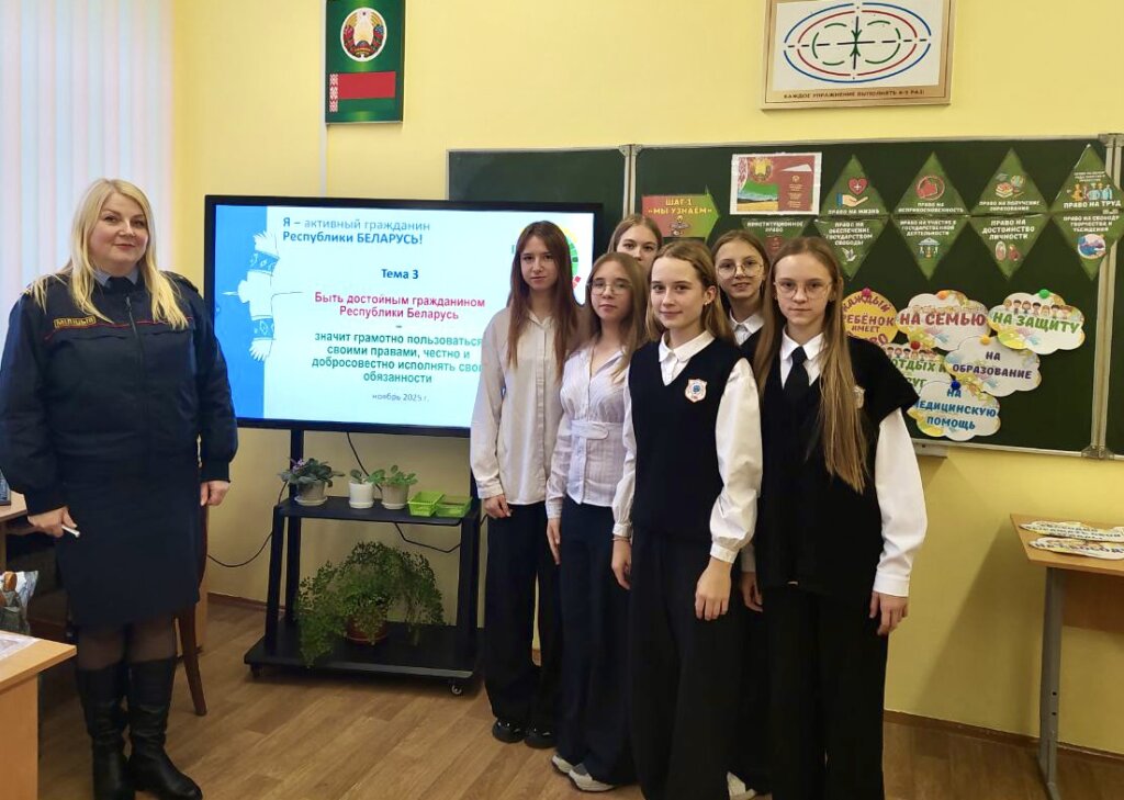 «Быть достойным гражданином Республики Беларусь – значит грамотно пользоваться своими правами, честно и добросовестно исполнять свои обязанности». Именно под таким девизом в Большеберестовицкой СШ в рамках проекта «Школа Активного Гражданина» состоялась открытая дискуссия, участниками которой стали учащиеся восьмых классов и приглашенный гость, старший оперуполномоченный ГБЭП Берестовицкого РОВД Татьяна Сурмач.