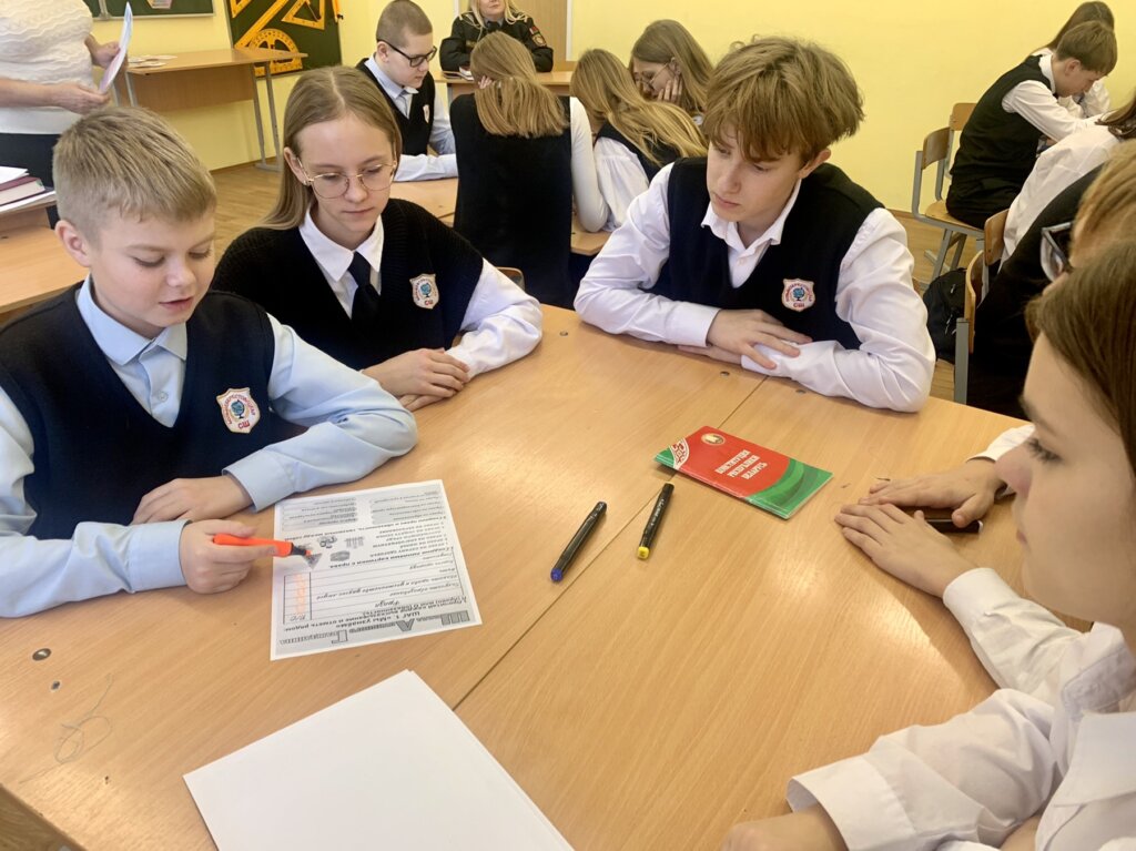Первый блок дискуссии был посвящен правам и свободам человека, гарантированным Конституцией Республики Беларусь. Учащиеся подробно остановились на таких фундаментальных правах, как право на образование, право на труд и справедливое вознаграждение, право на охрану здоровья, свободу мнений, убеждений и их свободное выражение.
