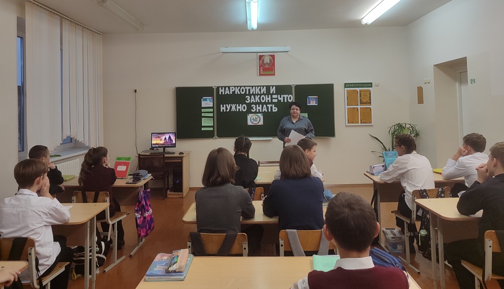 В рамках осенней антинаркотической акции «Миссия – жить!» для учащихся 7 класса средней школы аг. Пограничный прошел правовой час «Наркотики и закон: что нужно знать».