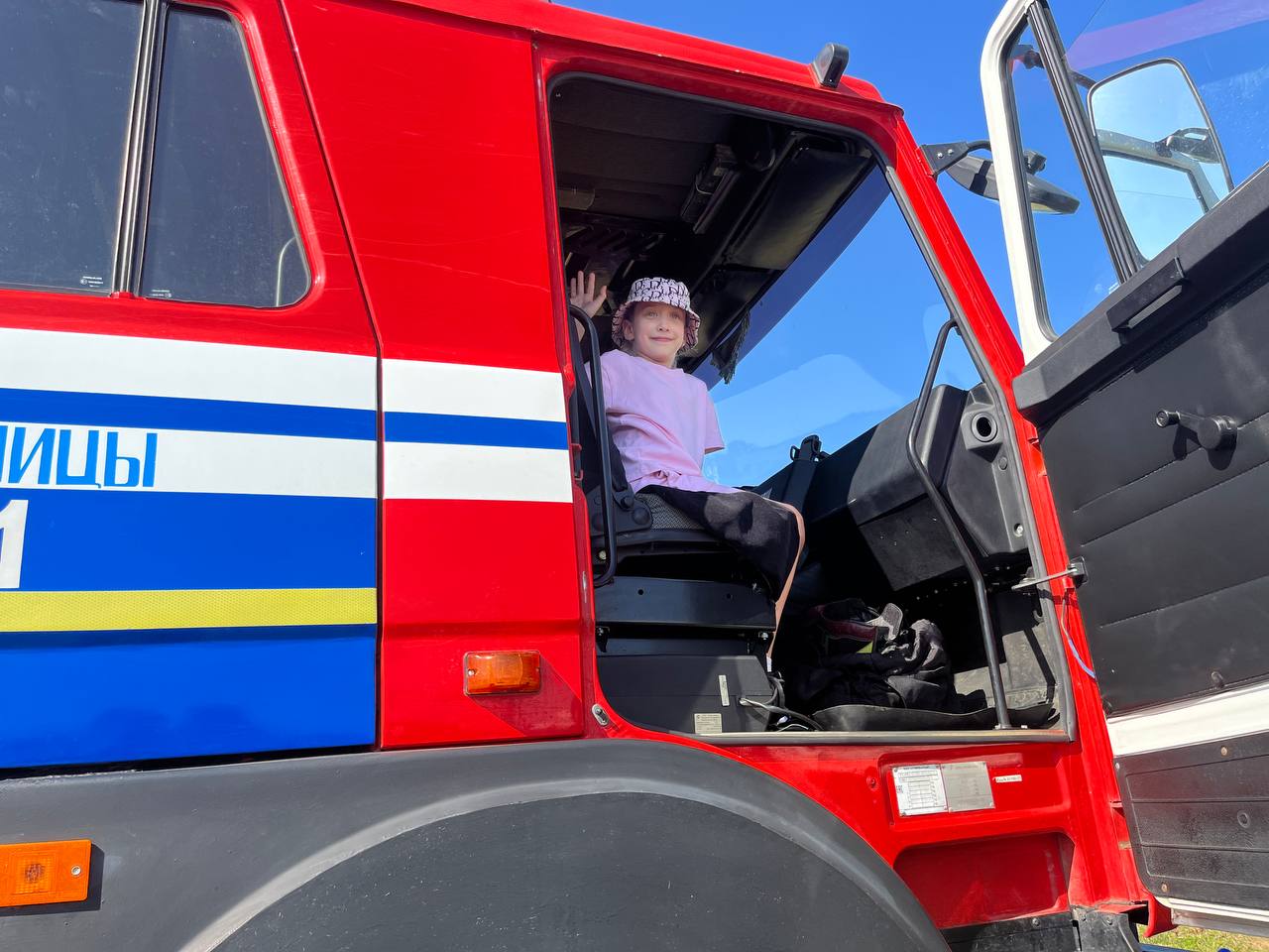 Девчонки и мальчишки задавали много вопросов о работе спасателей, примеряли их одежду и даже сидели за рулем настоящей пожарной машины!