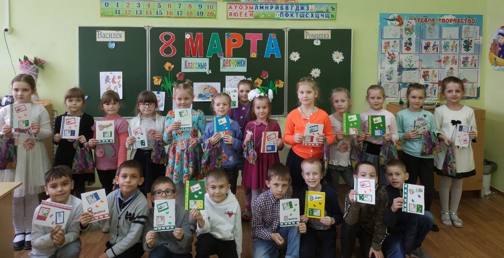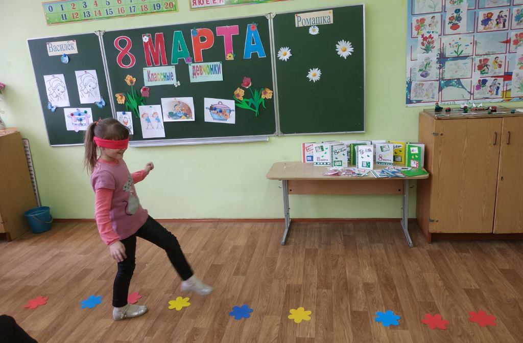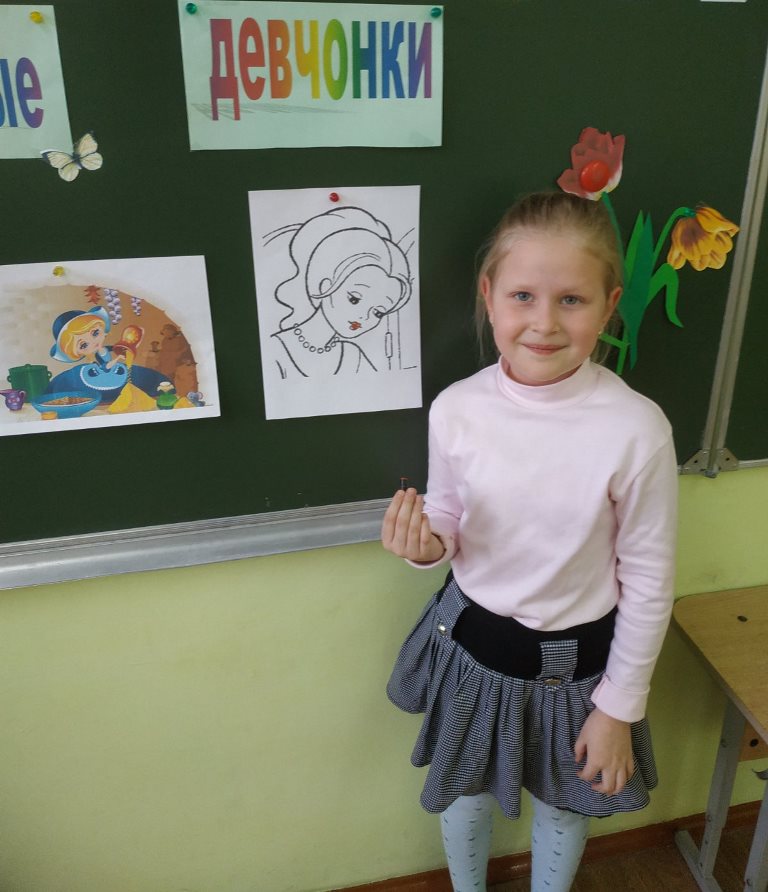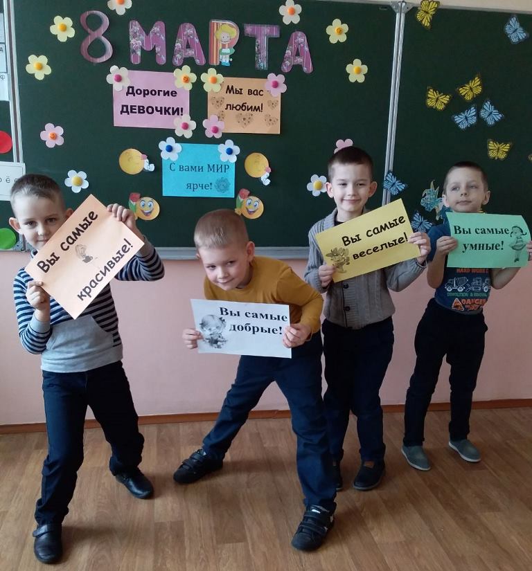 Мальчики порадовали одноклассниц чтением поздравительных стихотворений, исполнением весёлых песен.