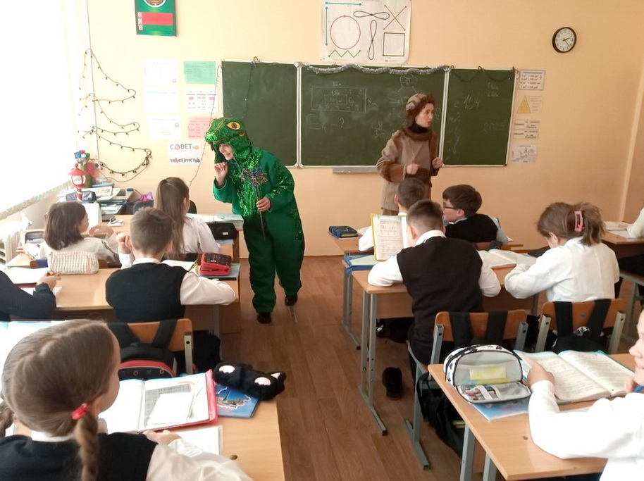 Библиотекари в костюмах обитателей сказочного леса Лесовика и Ужика посетили учреждения образования Берестовитчины и пригласили школьников отправиться в новогоднее путешествие с Берест-Зюзей и его друзьями.