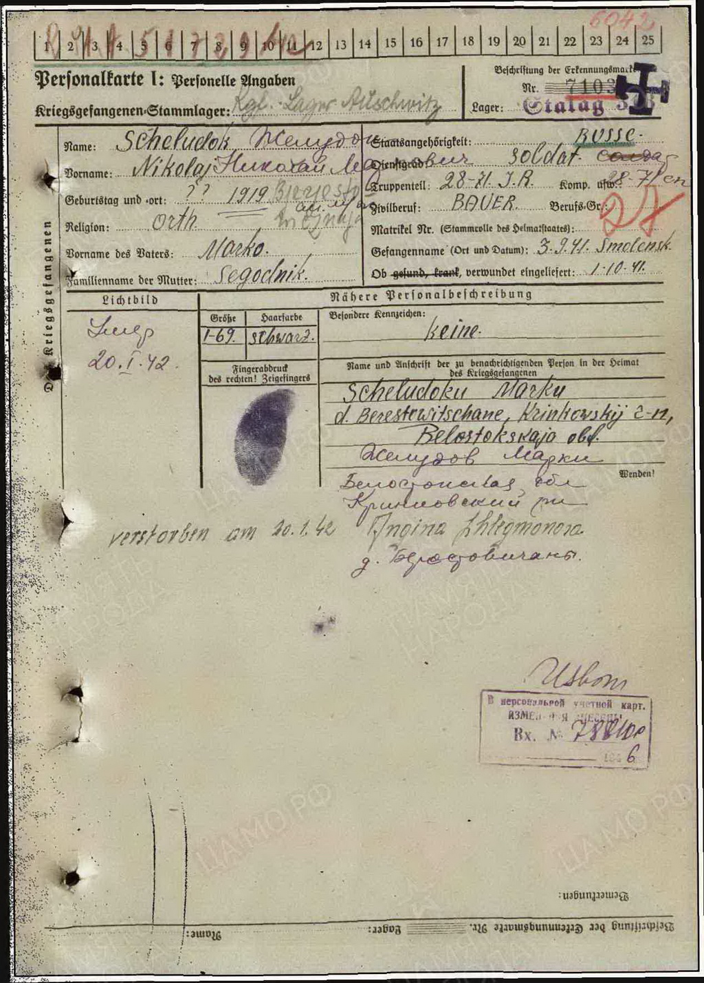Ужас Освенцима, где гибли сотни тысяч людей, отчетливо виден в документах о смертности советских военнопленных, в числе которых оказался и Николай Желудок. Эти документы – грустный, но необходимый исторический урок о жестокости и бесчеловечности фашизма.