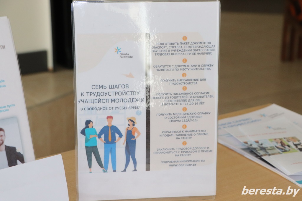 Молодым людям, желающим подзаработать, были представлены различные варианты занятости: индивидуальное трудоустройство , участие в студенческих отрядах, трудоустройство на временные рабочие места за счет средств государственного внебюджетного фонда социальной защиты населения Республики Беларусь. Благодаря этому, свой первый трудовой опыт смогут получить учащиеся школ и колледжа старше 14 лет.