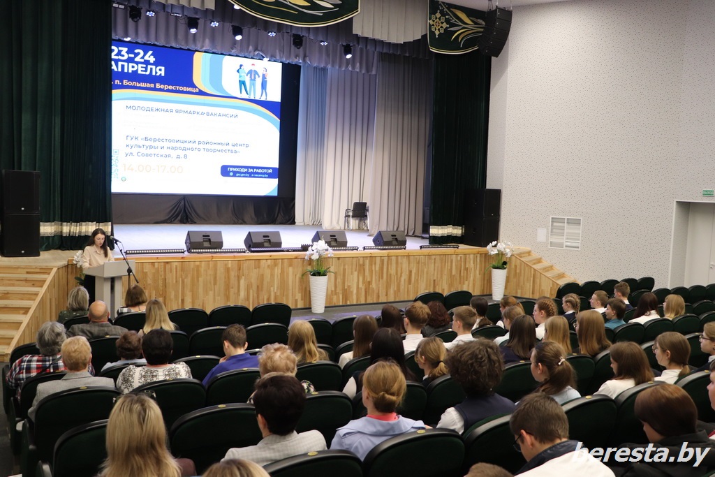 Берестовицкий районный центр культуры и народного творчества сегодня стал местом притяжения для молодежи. Здесь прошел первый день молодежной ярмарки вакансий. На встречу с представителями организаций и предприятий района школьники приходили целыми классами. Всех их объединила общая цель − найти работу.