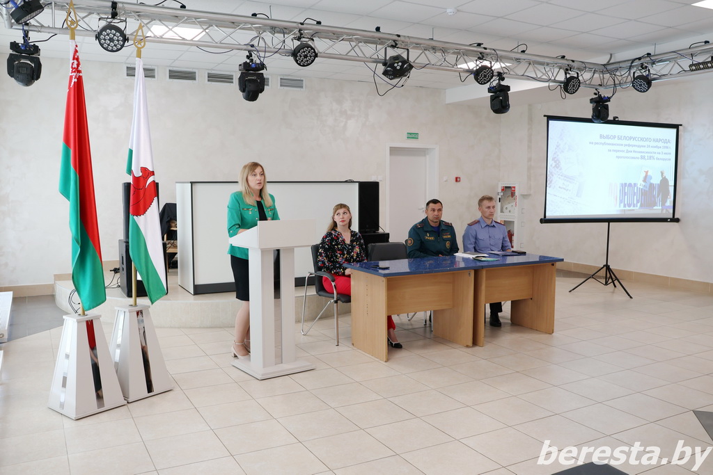 Информационно-пропагандистская группа в составе заместителя председателя Берестовицкого райисполкома Аллы Замировской, начальника управления по труду, занятости и социальной защите Берестовицкого райисполкома Жанны Хвастюк, начальника штаба отдела внутренних дел Берестовицкого РОВД, майора милиции Сергея Букаса, заместителя начальника районного отдела по чрезвычайным ситуациям Кирилла Баранова, председателя Берестовицкой районной организации ОСВОД Александра Гутовца провела встречу с трудовым коллективом Берестовицкого филиала облпотребобщества.