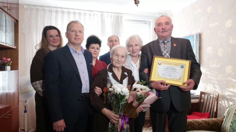Как, впрочем, и 100-летний юбилей фронтовой медсестры Марии Патлатенко. Поздравить ветерана пришли и члены первичной профсоюзной организации Гродненской университетской клиники.