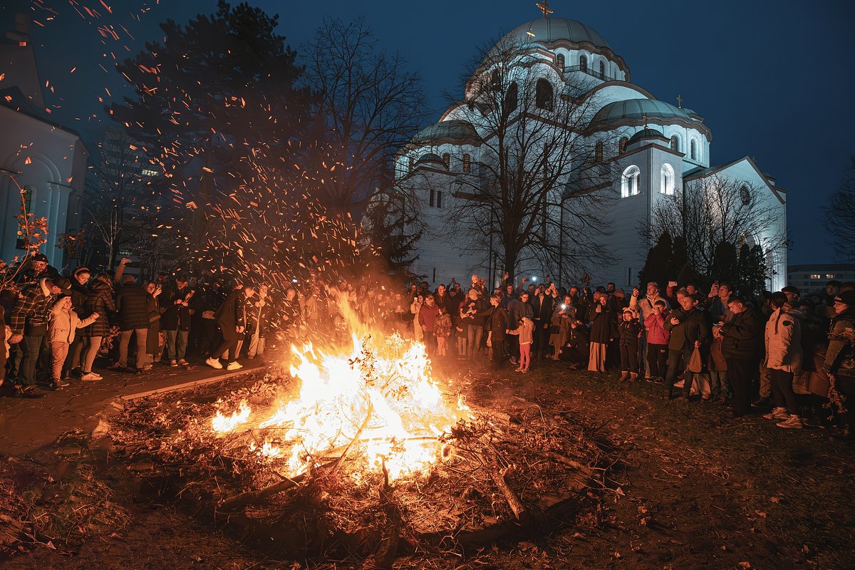 В Сербии в Рождественский сочельник принято сжигать бадняк — специальное ритуальное полено или сухое деревце.