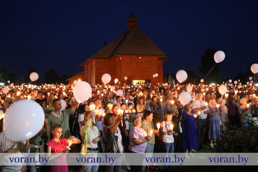 Затым у адзіным парыве, трымаючы запаленыя свечкі, вернікі прайшлі па вуліцах аграгарадка з малітвай за Айчыну, сем’і парафіі. Каб каласіліся хлебныя нівы, нараджаліся дзеткі, квітнеў родны край, а наўкол уладарылі супакой і еднасць.