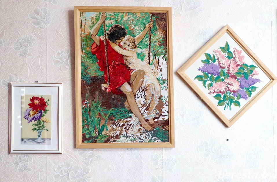 Кветкавыя кампазіцыі, жывёлы, птушкі, пейзажы, сцэны жыццёвай ідыліі і рэлігійныя зместы, метрыкі – творы жанчыны, вышываныя крыжыкам, уражваюць разнастайна-