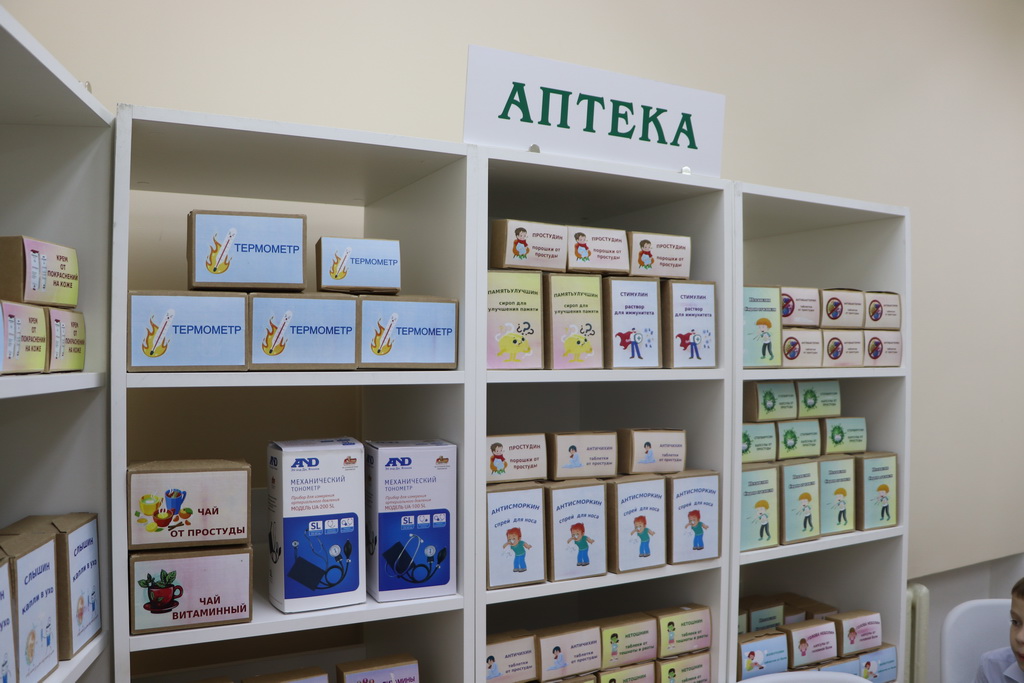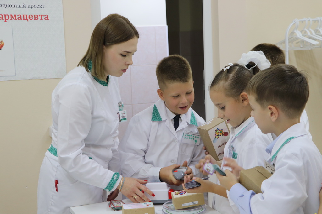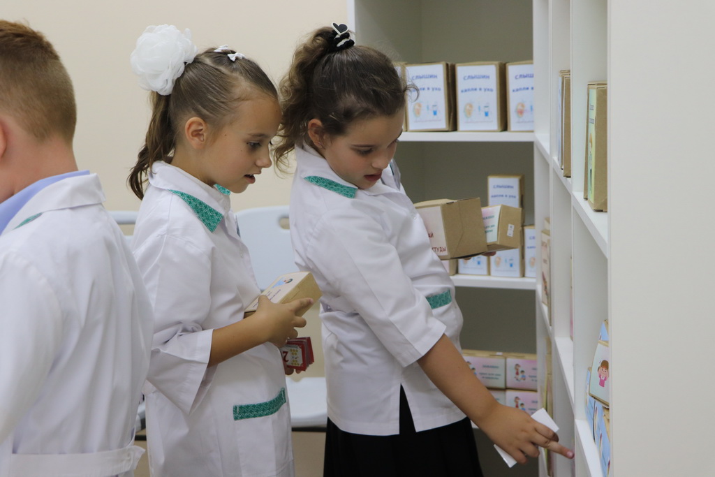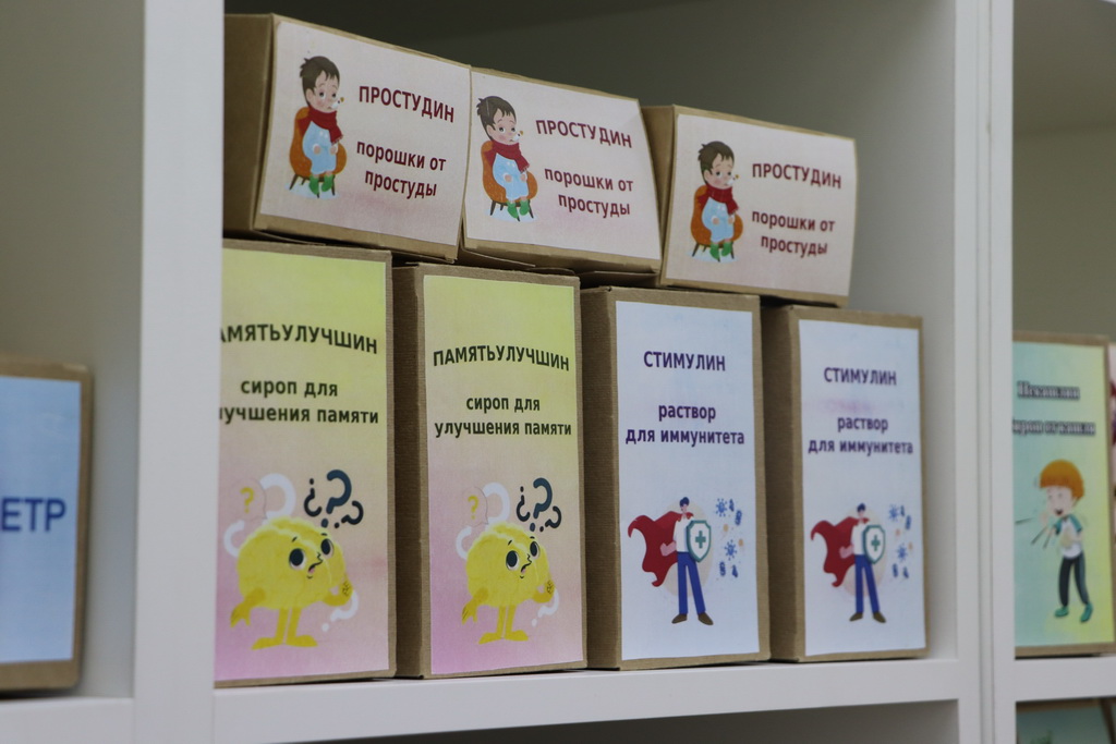 К слову, специально для ребят в «Школе юного фармацевта» была создана мобильная симуляционная аптека, которая включала в себя рабочее место фармацевта, а также препараты с веселыми и понятными детям названиями, например, «Заживин» или «Неболин».