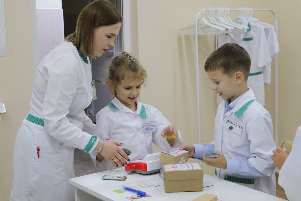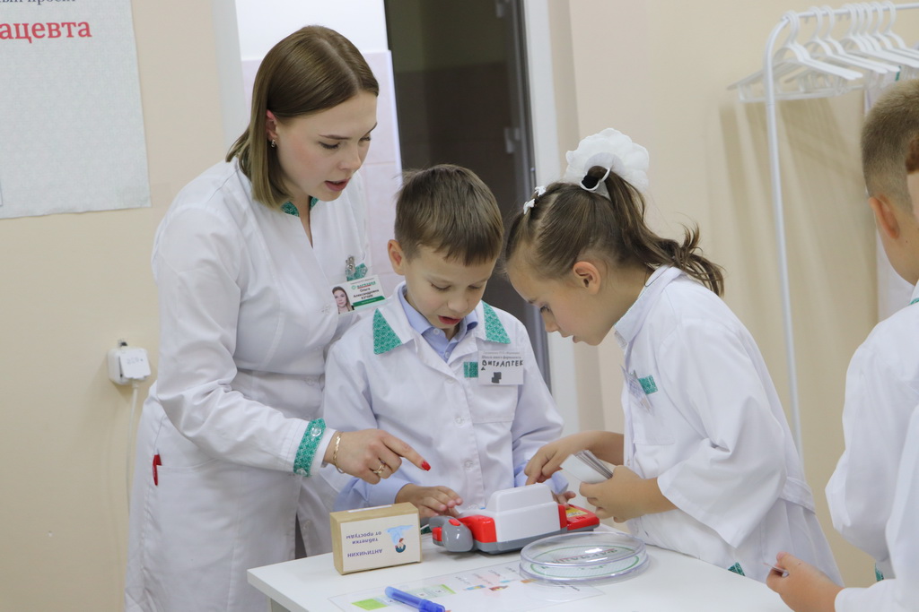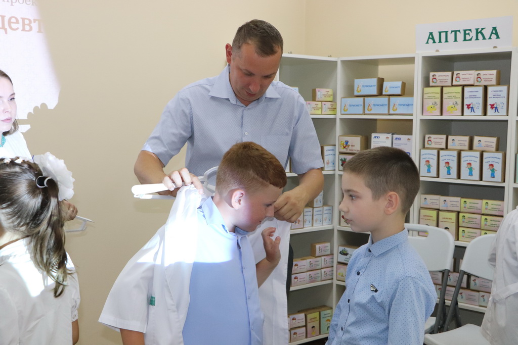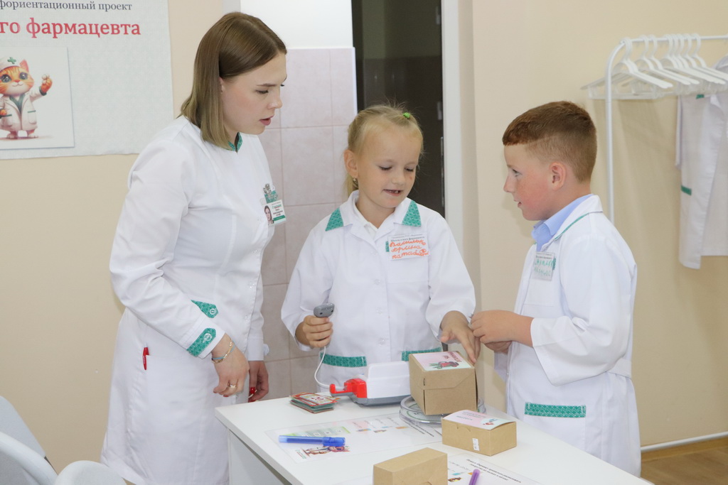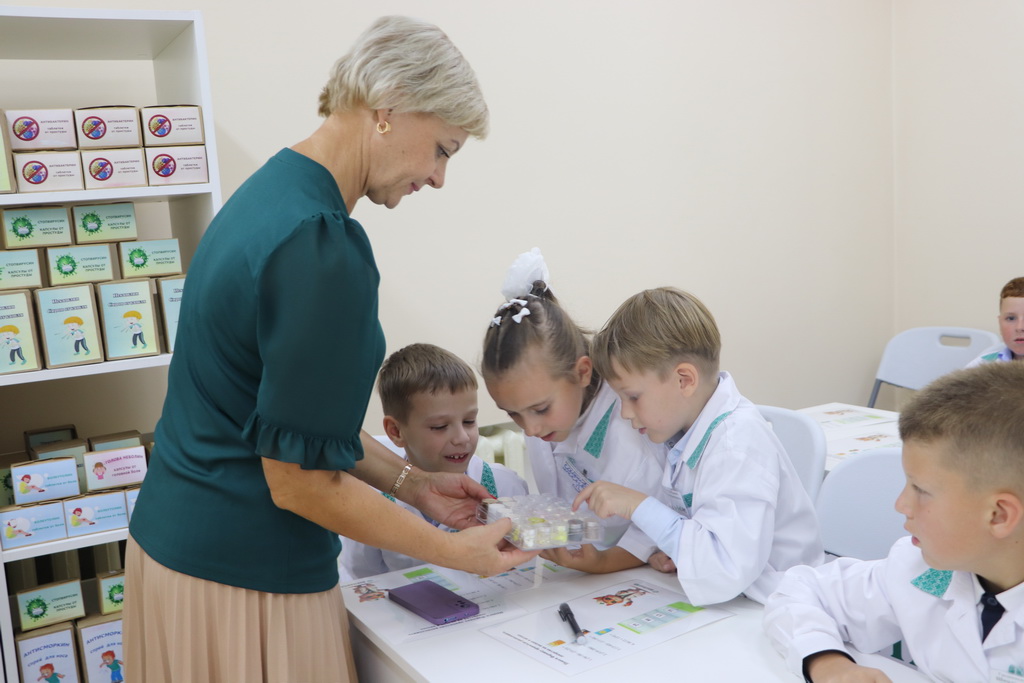 К слову, специально для ребят в «Школе юного фармацевта» была создана мобильная симуляционная аптека, которая включала в себя рабочее место фармацевта, а также препараты с веселыми и понятными детям названиями, например, «Заживин» или «Неболин».