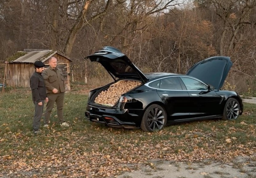 В TikTok завирусилось видео, как белорус проверяет, сколько картошки можно загрузить в электромобиль Tesla.