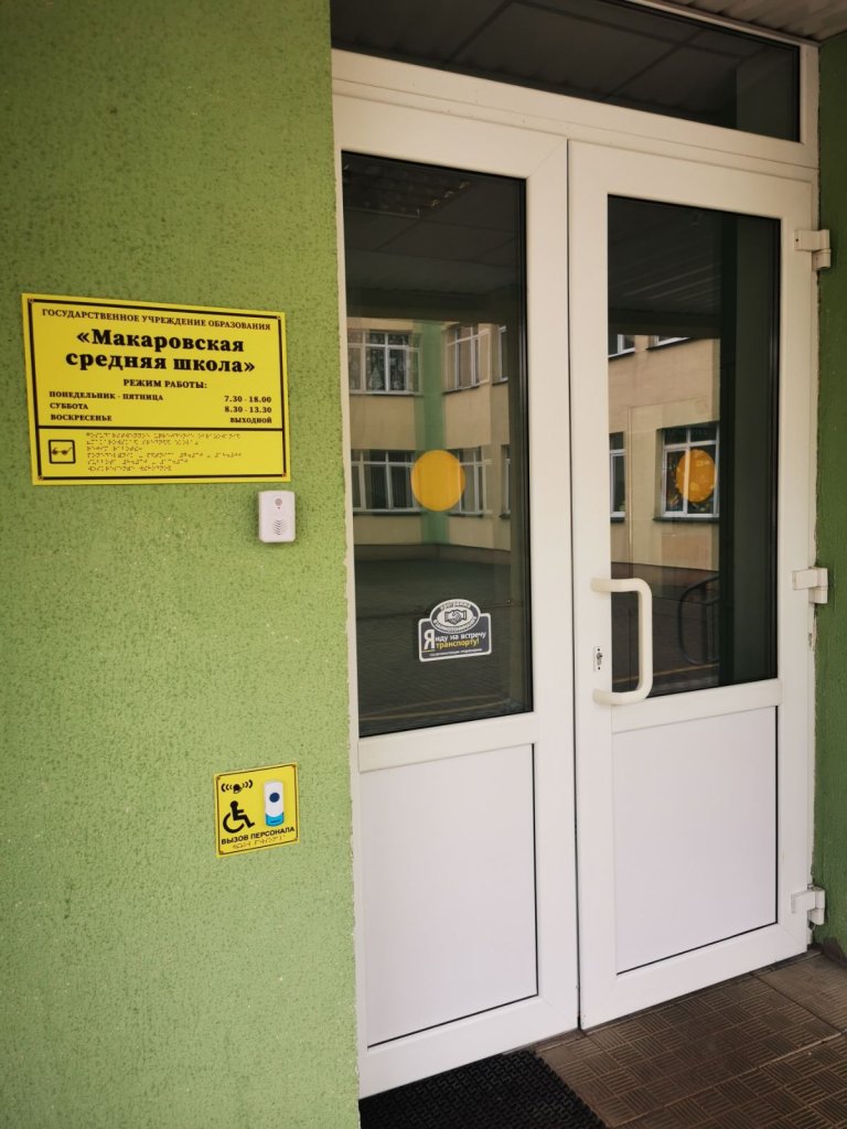 — Благодаря выделенным из районного бюджета средствам, ГУО «Макаровская средняя школа» также стала доступным объектом для инвалидов, — отметил Андрей Иосифович. — Здесь выделено место для стоянки транспортных средств, управляемых инвалидами, а также перевозящих инвалидов, детей-инвалидов, тактильные предупреждающие и направляющие элементы, пандус с поручнями, расширенные входные дверные группы, контрастная маркировка полотен прозрачных дверей и дверных ручек, речевой информатор, универсальные таблички шрифтом Брайля, кнопка вызова, мнемосхема и другие элементы.