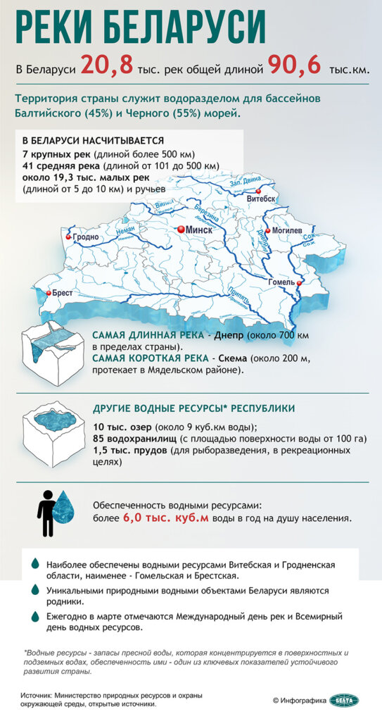 Основным источником воды в Беларуси являются средние и крупные реки, вдоль водных артерий исторически концентрировались крупные поселения и промышленные предприятия. Важное значение имеют и малые реки, особенно для сельской местности.