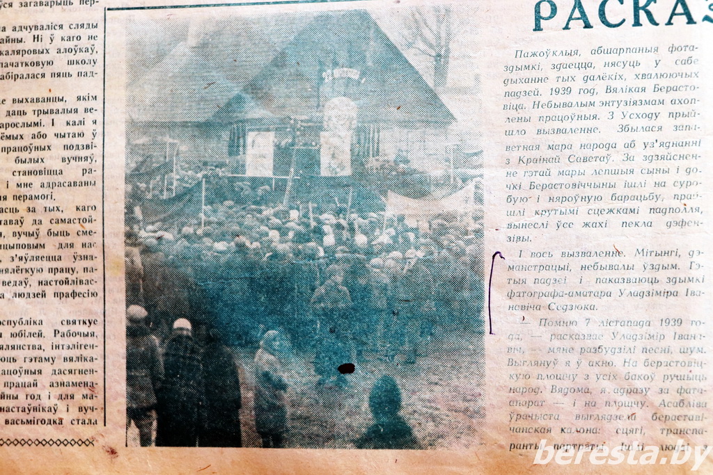 У раённай газеце “За камунізм” ад 28 снежня 1968 года, у нумары, прысвечаным 50-годдзю стварэння БССР, былі апублікаваны два здымкі фатографа-аматара Уладзіміра Седзюка. На першым – дэманстрацыя, якая адбылася 7 лістапада 1939 года ў Вялікай Бераставіцы, на другім – актывісты-падпольшчыкі Бераставіччыны. Большасць прозвішчаў, на жаль, за даўнасцю часу сцёртыя з памяці. Аднак намаганні і ахвяры землякоў мы помнім і ўдзячныя ім за дзень сённяшні ў адзінай мірнай Беларусі.