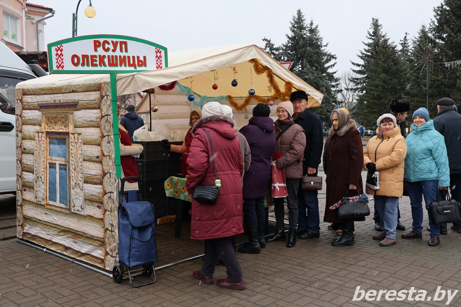Возле елки на Ратушной площади разместились празднично украшенные торговые палатки, в которых представляли свою продукцию все сельхозпредприятия района, Берестовицкий государственный колледж, Берестовицкий филиал Гродненского областного потребительского общества, производственный цех «Берестовица» ОАО «Молочный мир» и Щучинский филиал ОАО «Молочный мир», индивидуальные предприниматели.