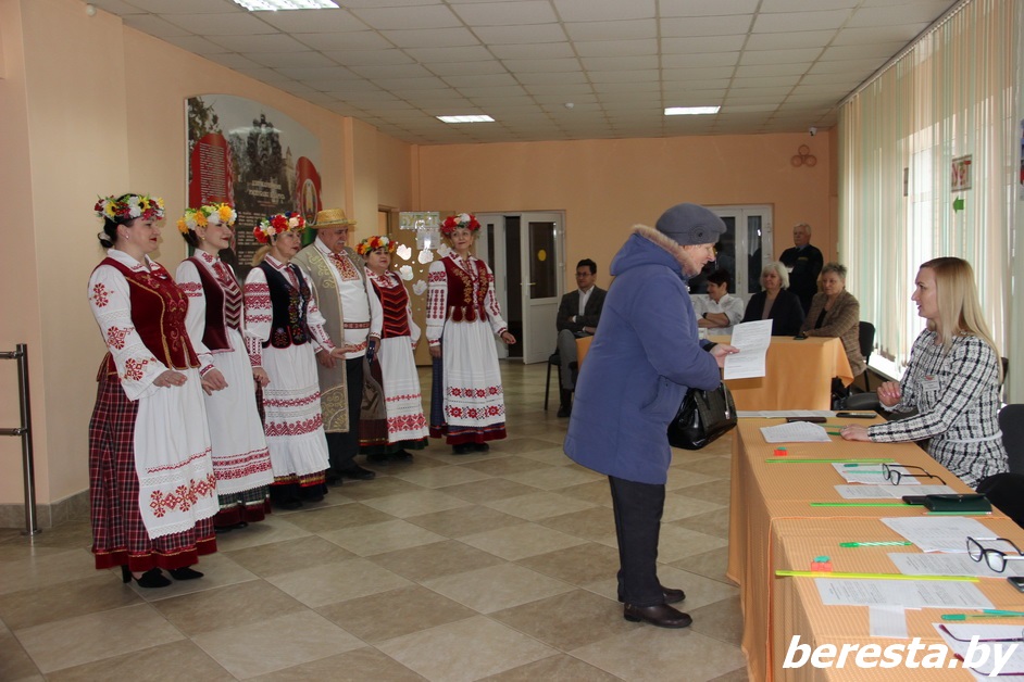 Ближе к обеду для создания праздничного настроения и приятной атмосферы во время голосования выступали артисты народного ансамбля народной песни «Бераставiцкiя музыкi». Выполнив свой гражданский долг, избиратели часто направлялись в буфет, который работает на участке для голосования. Здесь представлен широкий выбор кулинарной продукции от Берестовицкого филиала Гродненского облпотребобщества, можно приобрести фрукты и овощи, напитки и мучные изделия. Кроме того, действует выставка с государственными символами Республики Беларусь.
