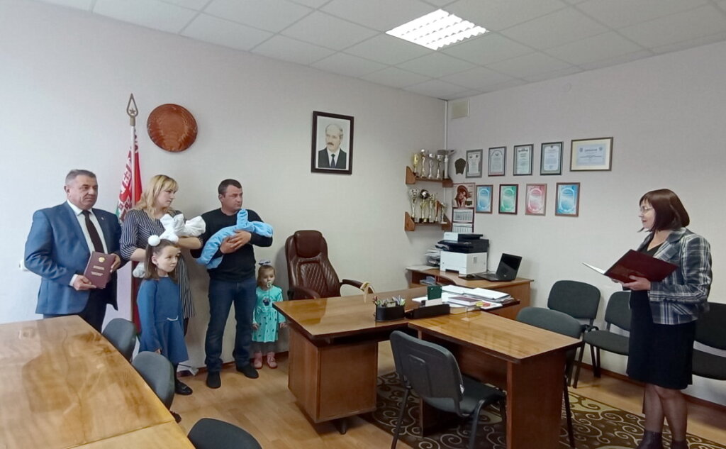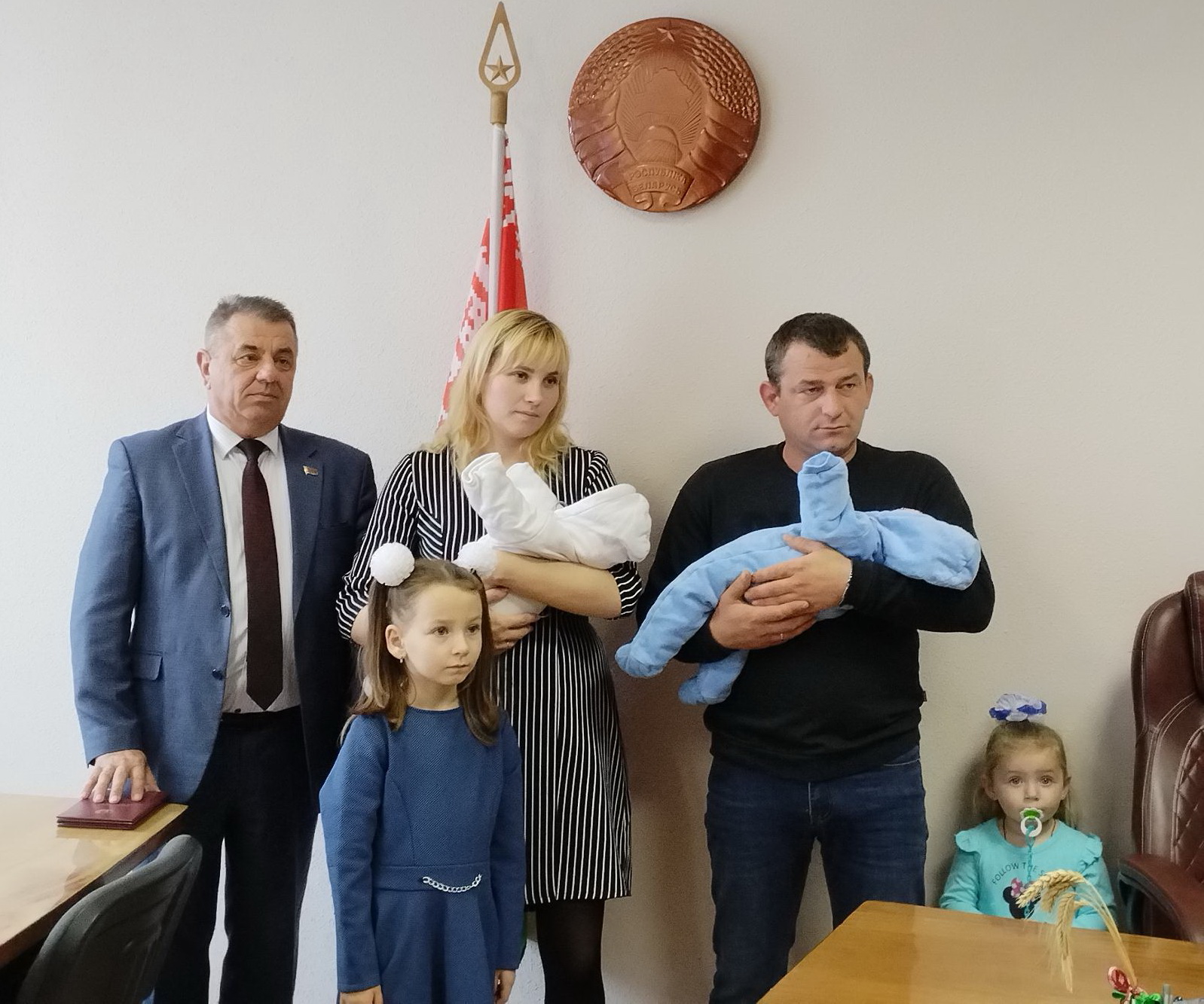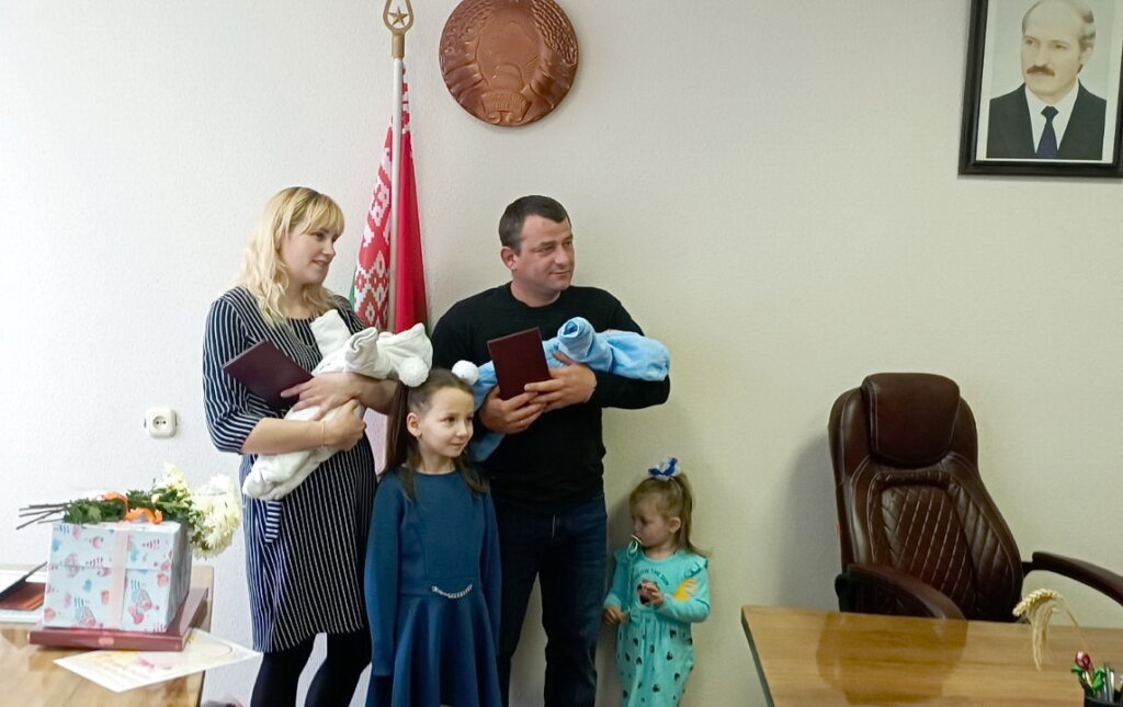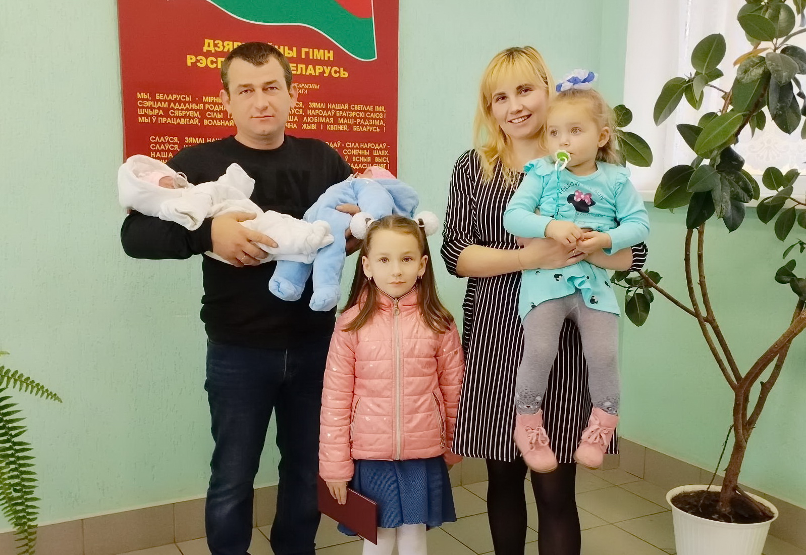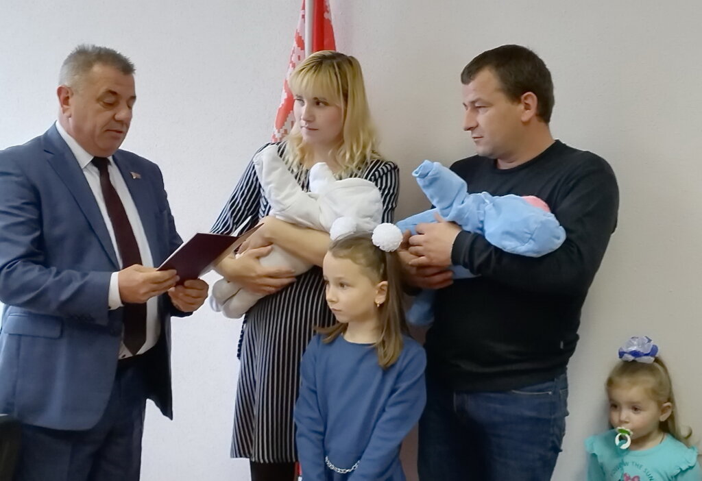 В ходе акции-поздравления под названием “Двойное счастье” представители сельисполкома, общественных объединений «Белорусский союз женщин» и «Белорусский республиканский союз молодежи», КСУП «Пограничный-Агро», Территориального центра социального обслуживания населения Берестовицкого района и отдела загса Берестовицкого райисполкома поздравили семью Залуцких с рождением двойни – явлением достаточно редким для нашего района. Теперь эта семья получила статус многодетных, ведь у пары подрастает еще две девочки – Ксения и Ульяна.