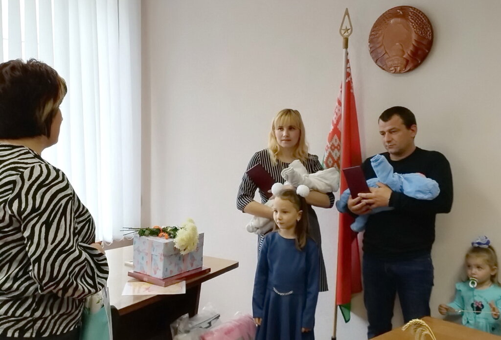 В агрогородке Пограничный состоялась торжественная регистрация рождения близнецов – девочек Евы и Варвары, дочерей Анастасии и Вадима Залуцких.