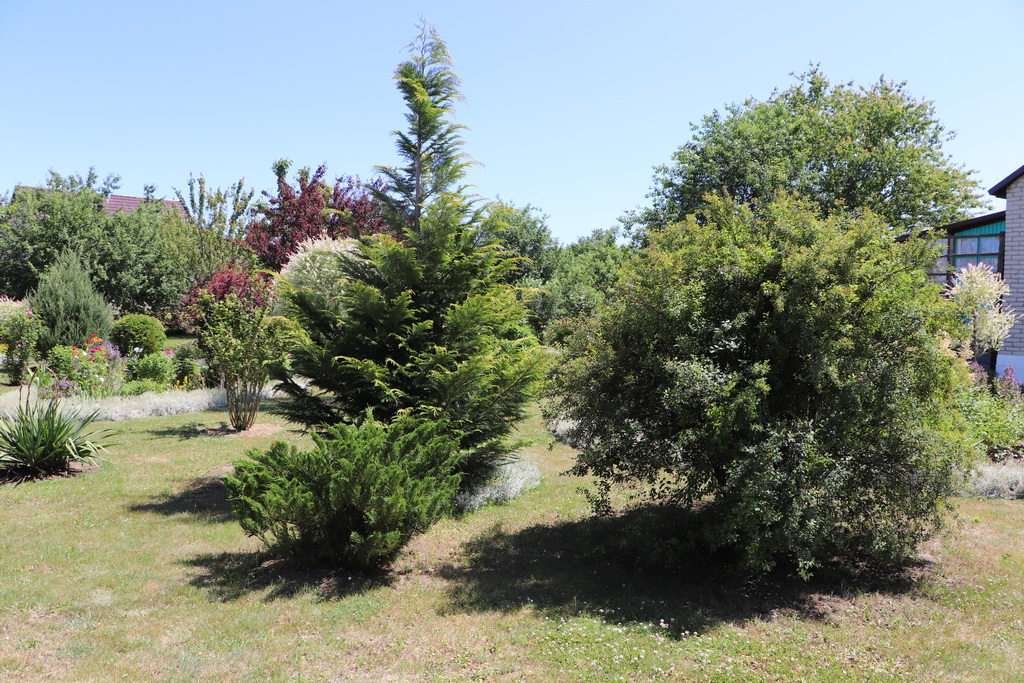 Ива Нана, можжевельник Скай Рокет, пузыреплодник Дьябло, юкка, скумпия, кипарисовик, туи Смарагд – чего только здесь нет, в названиях можно затеряться. А вот в саду не потеряешься. Каждое растение на своем месте.