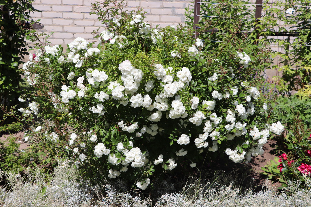 На территории сада расположены клумбы, их края обсажены ясколкой. Растение образует плотный серебристый ковер, который эффектно контрастирует с другими цветами на клумбе, создавая визуальный акцент и ощущение «снежных сугробов».