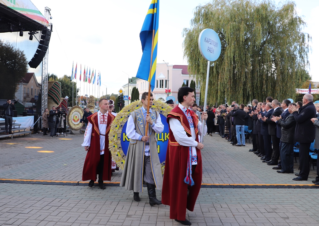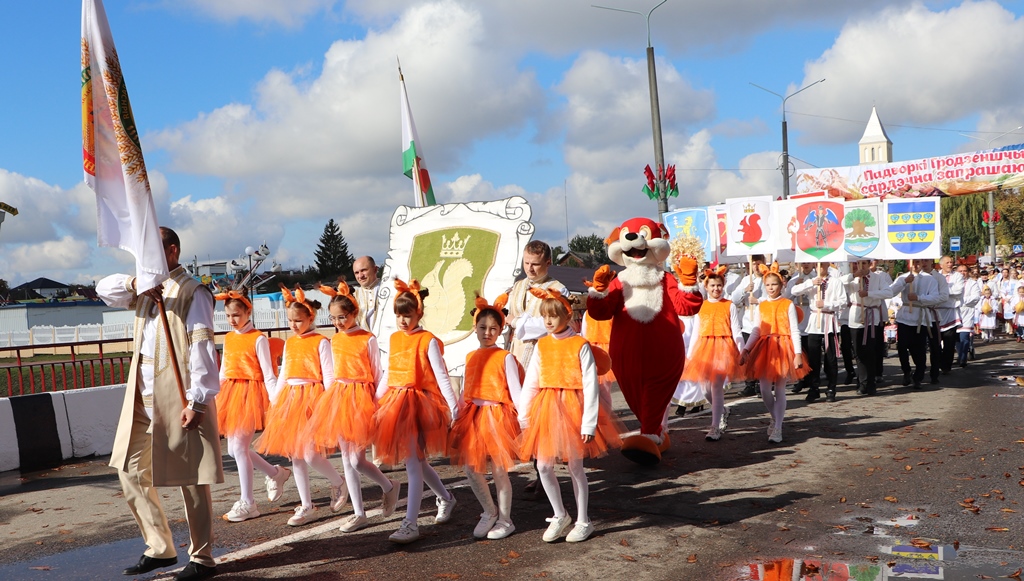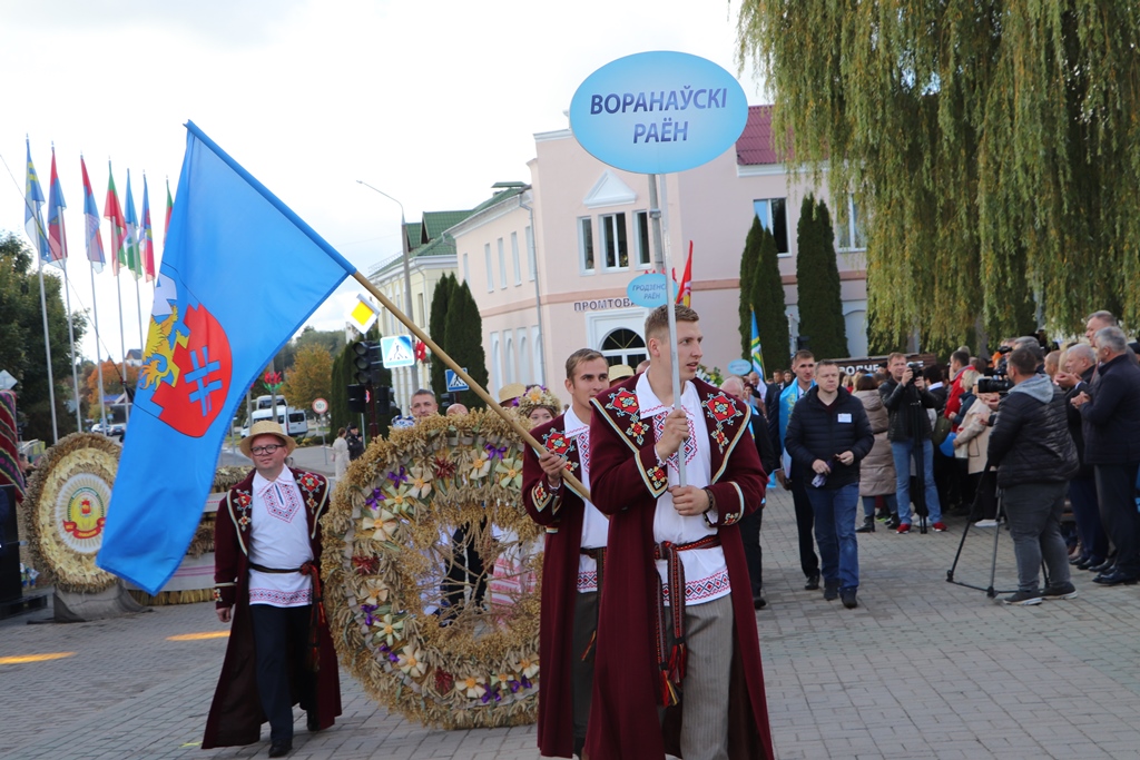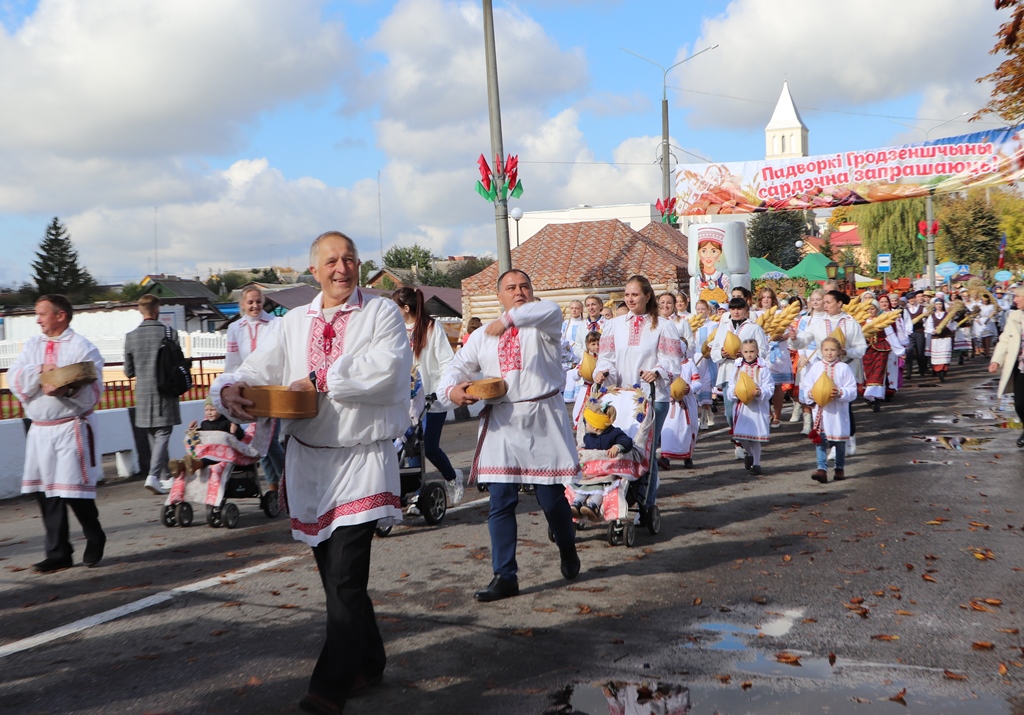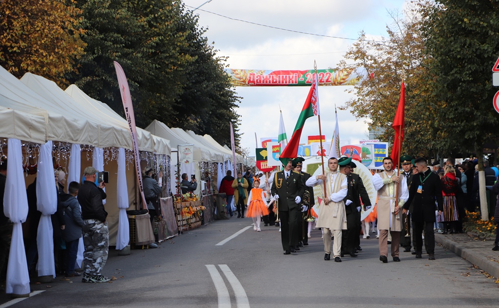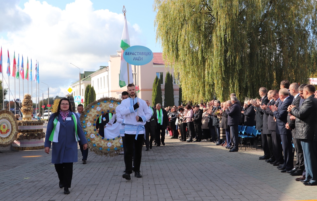 Святочнае шэсце «Ад зярнятка да каравая» адкрыла «Дажынкі — 2022» у Вялікай Бераставіцы. Калона лепшых аграрыяў Гродзеншчыны ў суправаджэнні ваеннага аркестра Гродзенскай пагранічнай групы рушыла по вул. Леніна да Ратушнай плошчы.