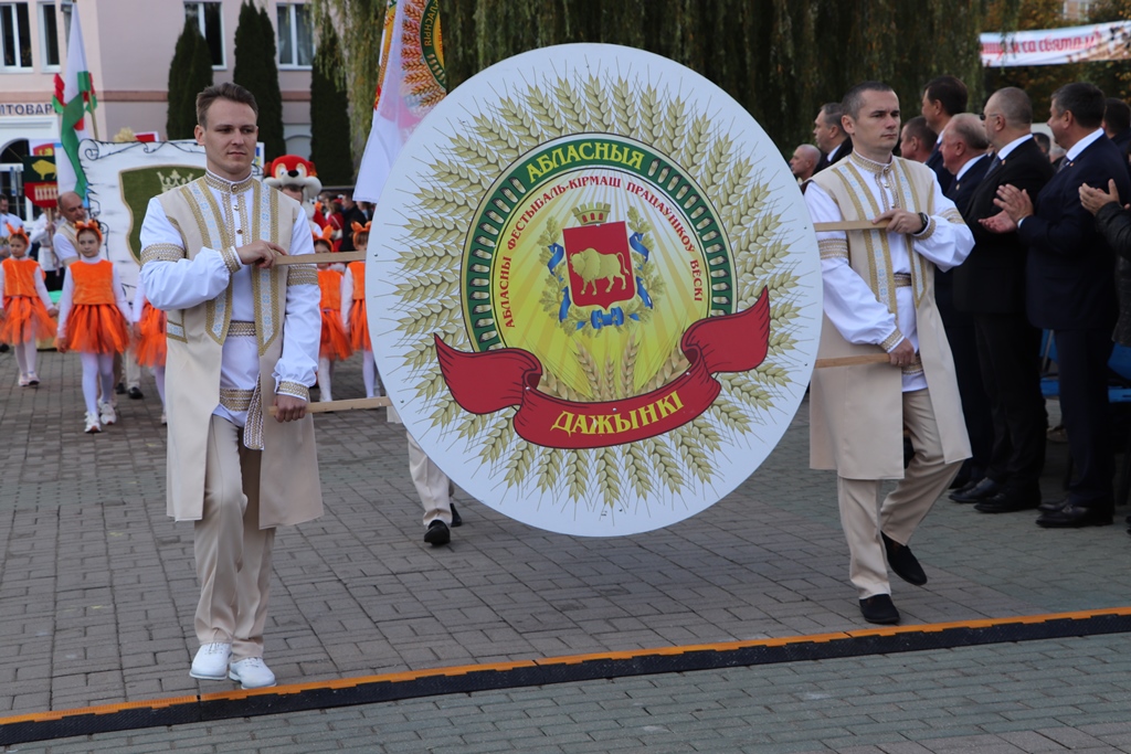 На пачатку калоны — сцяг і герб абласных «Дажынак», затым сімвал Вялікай Бераставіцы — Вавёрка, далей гербы ўсіх раёнаў Гродзеншчыны. За імі ішлі мамы з маленькімі дзеткамі ў святочна ўпрыгожаных калясках, а далей — дзеці з зярняткамі і моладзь з залатымі каласамі збожжавых, сейбіты, якія шчодра пасыпалі ўсіх прысутных зернем, жнеі з сярпамі ў руках і дажыначнымі снапамі. За імі крочылі дэлегацыі ўсіх раёнаў Гродзенскай вобласці.