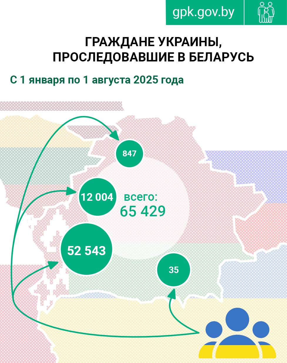 С начала 2025 года в нашу страну въехали 65 429 граждан Украины: через украинско-белорусскую границу — 35, транзитом через Польшу — 52 543, через Литву — 12 004, через Латвию — 847.