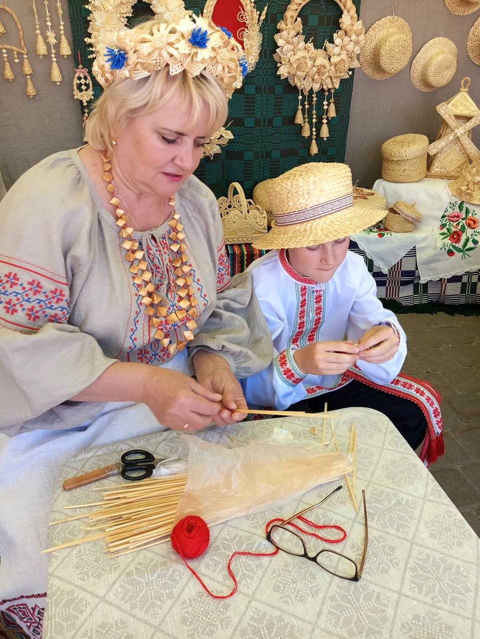 Заведующий отделом ремесел и традиционной культуры Берестовицкого районного центра культуры и народного творчества Тамара Касьян, ее дочь, методист отдела Анастасия Касьян продемонстрировали желающим основы соломенного ремесла и ремесла вышивки. Внук Тамары Николаевны Иван, участвующий в мастер-классе, умело показал свои знания азов соломоплетения, полученных от бабушки. Именно за преемственность традиций из поколения в поколение семья Касьян была награждена дипломом 2-й степени ХV Республиканского фестиваля-ярмарки народных художественных ремесел «Вясновы букет». Традиции продолжают жить.