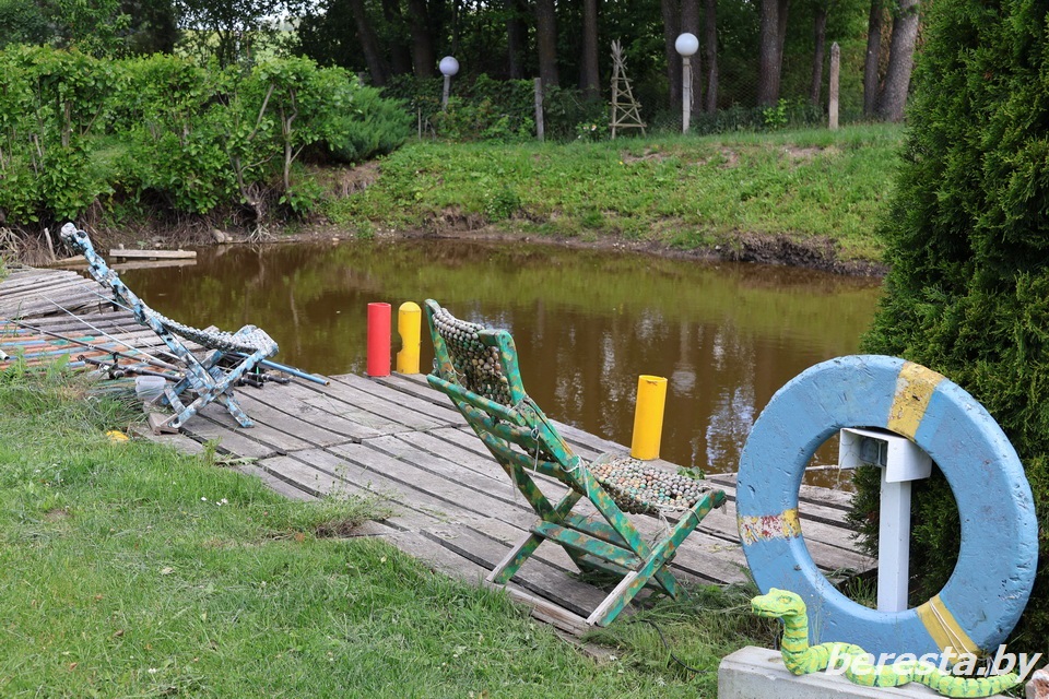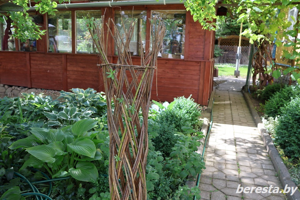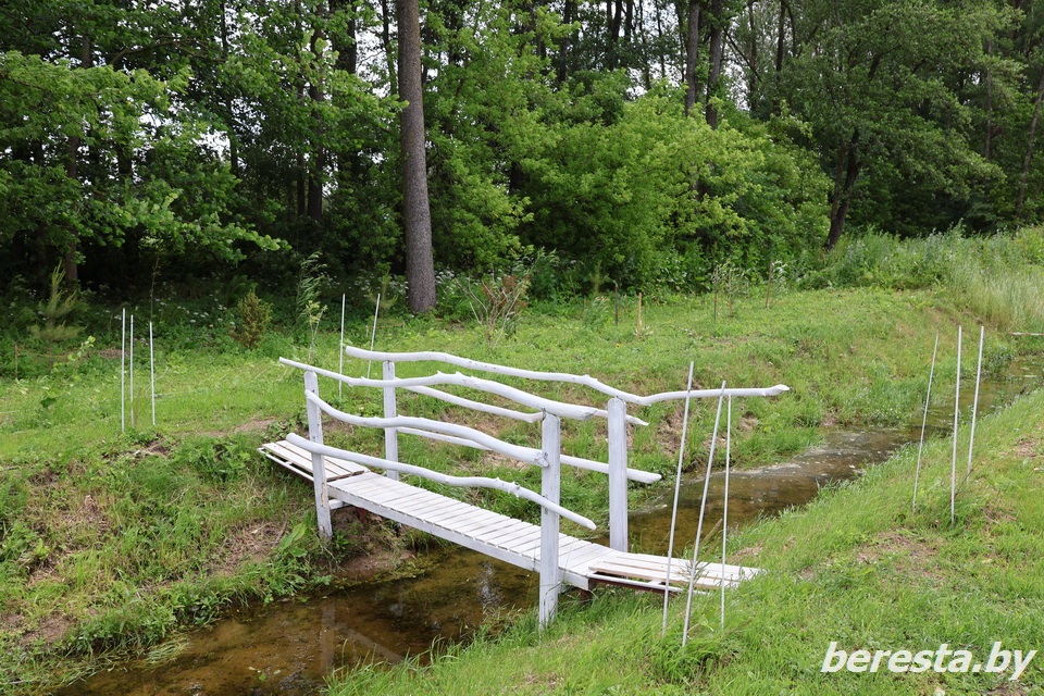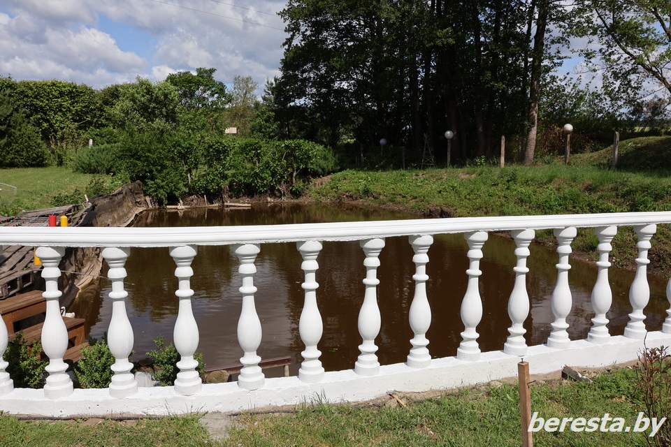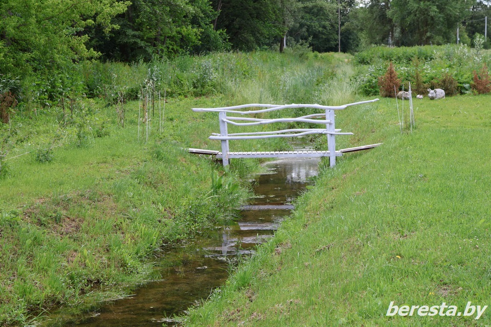А вот речка на территории участка «досталась по наследству». В свое время она была сильно заросшая, поэтому при обильных дождях часто выходила из берегов и затапливала огороды. Но по инициативе местных жителей реку очистили. Сергей Евгеньевич на своем участке вместе с сыновьями выровнял и засеял травой берега, посадил декоративные растения. Соорудил белый мост с колоритными перилами. Эти перила необычны тем, что сделаны из веток, которые обточили бобры.