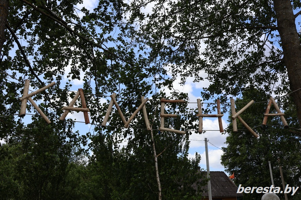 Дача семьи Иващенко – это первый дом в деревне, но указательный знак Каменка стоит гораздо дальше. Поэтому на предложение сына сделать растяжку с надписью «Каменка» Сергей Евгеньевич охотно согласился. Теперь каждый, кто въезжает в деревню, обращает внимание на необычную надпись. А буквы сделаны из веток, которые обточили бобры, – этого добра хватает в здешних местах.