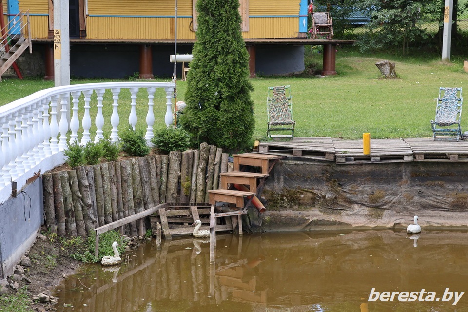 Вода на любом приусадебном участке несомненно создает особый колорит. Озеро хозяева выкопали самостоятельно. Конечно, сразу же по нему «поплыли» лебеди. А вот ограждение сделали сыновья Сергея Евгеньевича. На его создание ушел почти целый год. Столбик за столбиком, и озеро украсил красивый бетонный забор. Кстати, здесь можно порыбачить: тут водятся карасики.