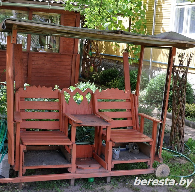 Есть на участке и баня с необычной дровницей в виде кареты. Рядом беседка, где разместились стол и скамейка из натурального дуба, и здесь любят отдыхать внуки. Они, кстати, часто помогают дедушке мастерить шедевры. Интересно и то, что Сергей Евгеньевич никогда не показывает весь процесс создания предметов полностью. Для внуков каждое изделие должно быть сюрпризом.