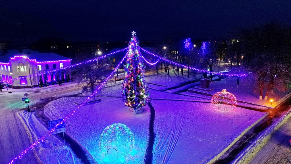 The most beautiful place on these winter days in Berestovitsa is the central square which is called Ratushnaya. It is especially beautiful in the evening time when illumination lights up everywhere.