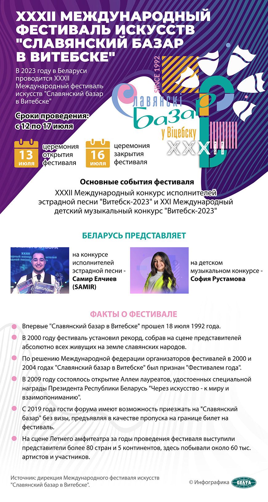 Торжественное открытие XXXII Международного фестиваля искусств «Славянский базар в Витебске» пройдет 13 июля, а главному событию форума будет предшествовать череда знаковых мероприятий.