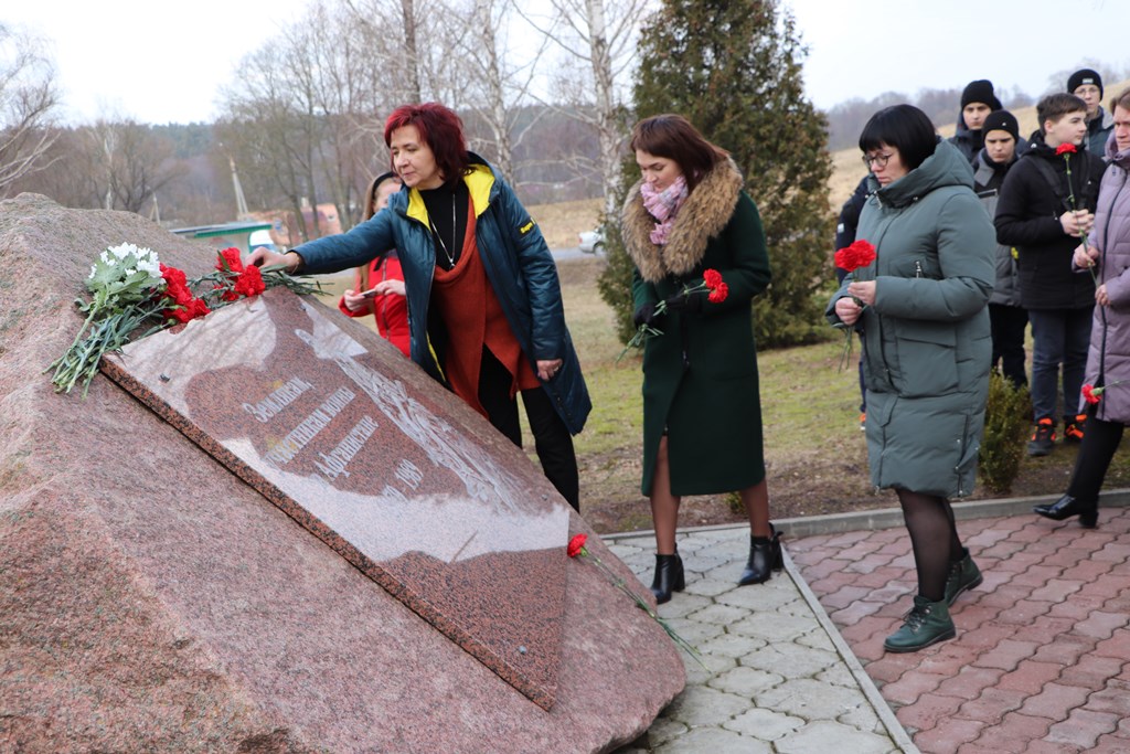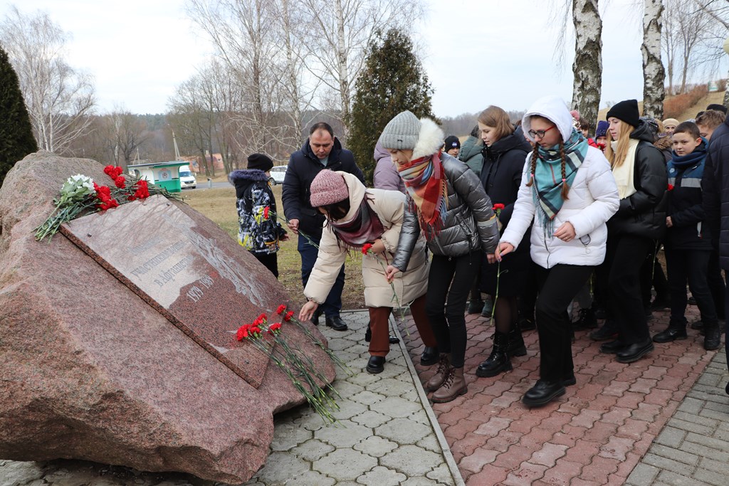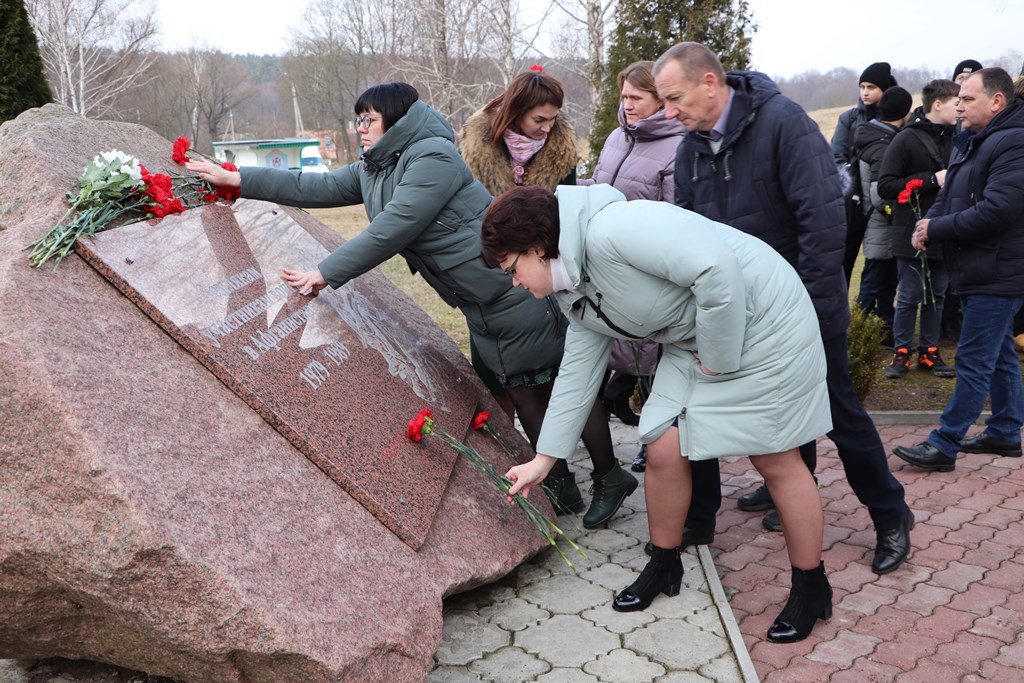 Присутствующие на митинге почтили минутой молчания тех, кто погиб в бою, и тех, кто вернулся, но не дожил до сегодняшнего дня, и в знак уважения к тем, кто выполнял интернациональный долг в Афганистане, возложили цветы к Памятному знаку.
