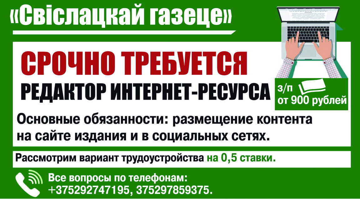 Требуется редактор интернет-ресурса в «Свіслацкую газету»
