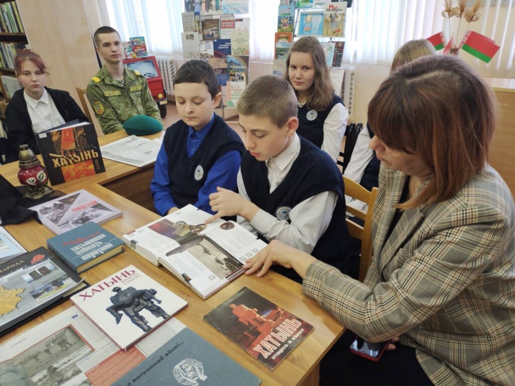 Колькі гора і слёз прынёс фашызм нашаму народу. Бібліятэкар распавяла моладзі пра вёску Верхаўляны, якая знаходзіцца ў Бераставіцкім раёне і з’яўляецца» сястрой Хатыні» і паказала фотаздымак памятнага знака спаленай вёсцы, ля якога кожны год ў гэты дзень праходзіць мітынг-рэквіем, як памяць аб ўсіх загінуўшых аднавяскоўцах. Маладое пакаленне павінна ведаць сваю гісторыю, памятаць яе, каб не дапусціць паўтарэння фашызму. Моладзь з цікаўнасцю знаёмілася з матэрыяламі кніжнай выставы, якая змяшчала літаратуру па тэме Хатынскай трагедыі.