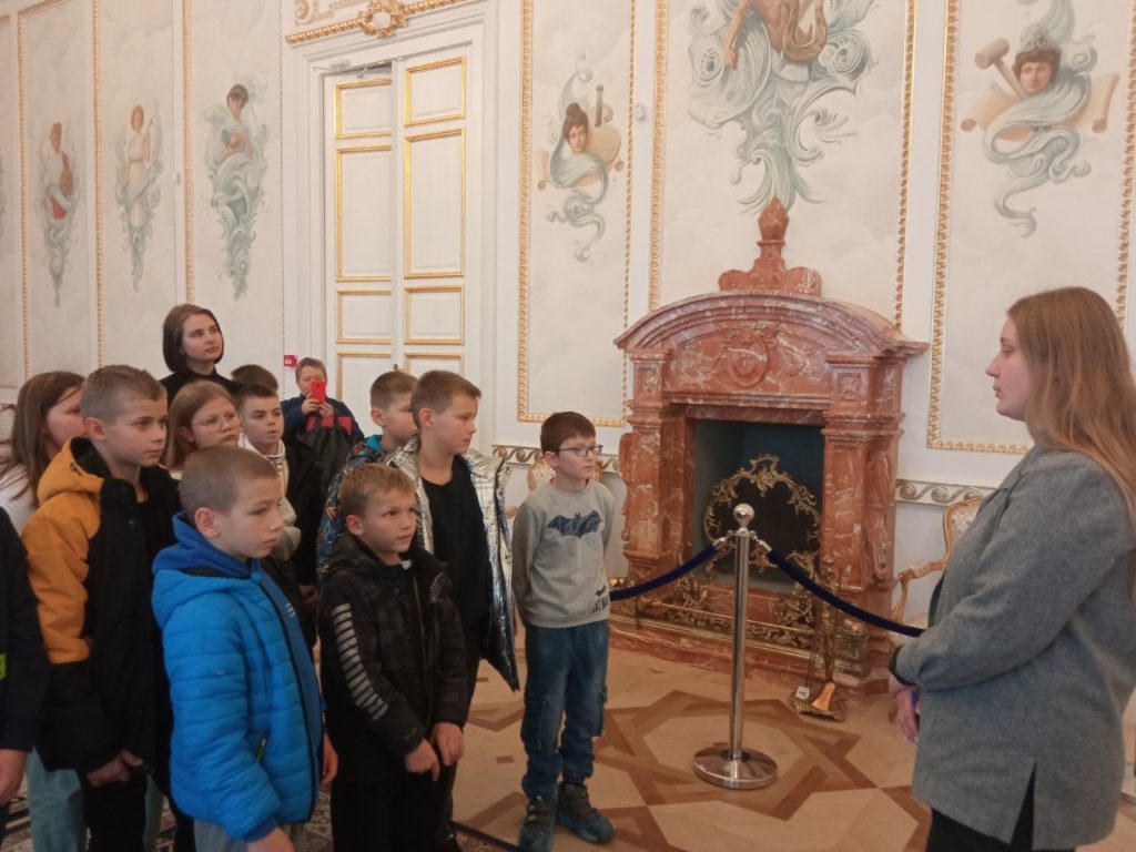 Поэтому и началась экскурсия с Коссовского замка – дворца Пусловских, где школьники узнали историю Коссово и его окрестностей. Ребята с восторгом рассматривали Большой (Белый) зал и узнали много интересного о жизни и деятельности династии Пусловских и времени расцвета замка.