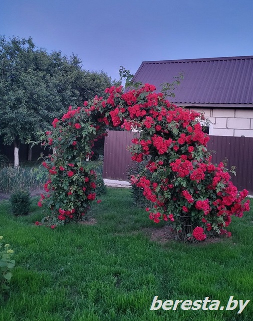И в доме, и на участке ко всему приложили руку и фантазию хозяева. Кроме того, Дмитрий сам сделал из металла «радугу» во дворе, которую красиво обвила плетистая роза, с любовью посаженная супругой. Композиция невероятная, сразу бросается в глаза и очень украшает участок.