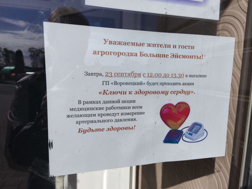 23 сентября медицинские работники Эйсмонтовской амбулатории общей практики совместно со специалистами Берестовицкого районного центра гигиены и эпидемиологии провели информационную акцию «Ключи к здоровому сердцу» для посетителей магазина КСУП «Воронецкий».